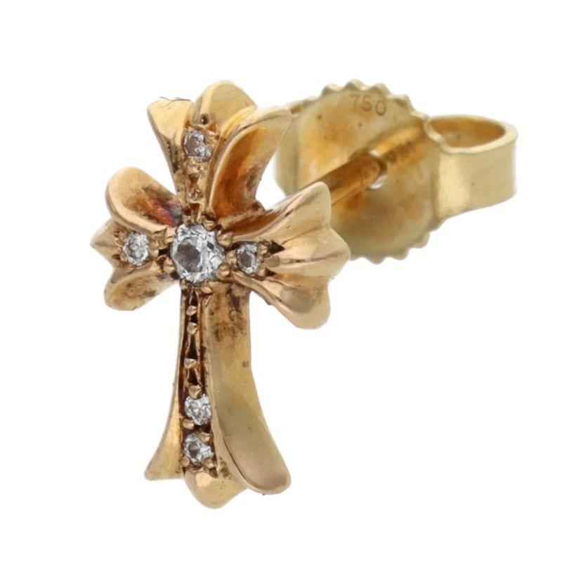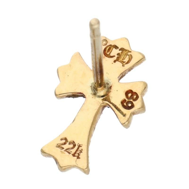 Chrome Hearts 22K CH CRS 2 FAT P DIA CH Cross Fat Stud Pave Diamond Gold Earrings (Yellow Gold and Clear, 1.15g) [821152] [GZ11] [Accessories] [Pre-owned] bb468#rinkan*B