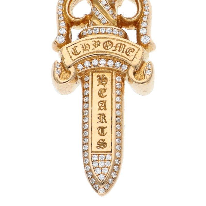 Chrome Hearts 22K Double Dagger P Diamond Pave Diamond Gold Necklace (Yellow Gold and Clear, 36.87g) [101152] [SJ02] [Accessories] [Pre-owned] bb339#rinkan*B