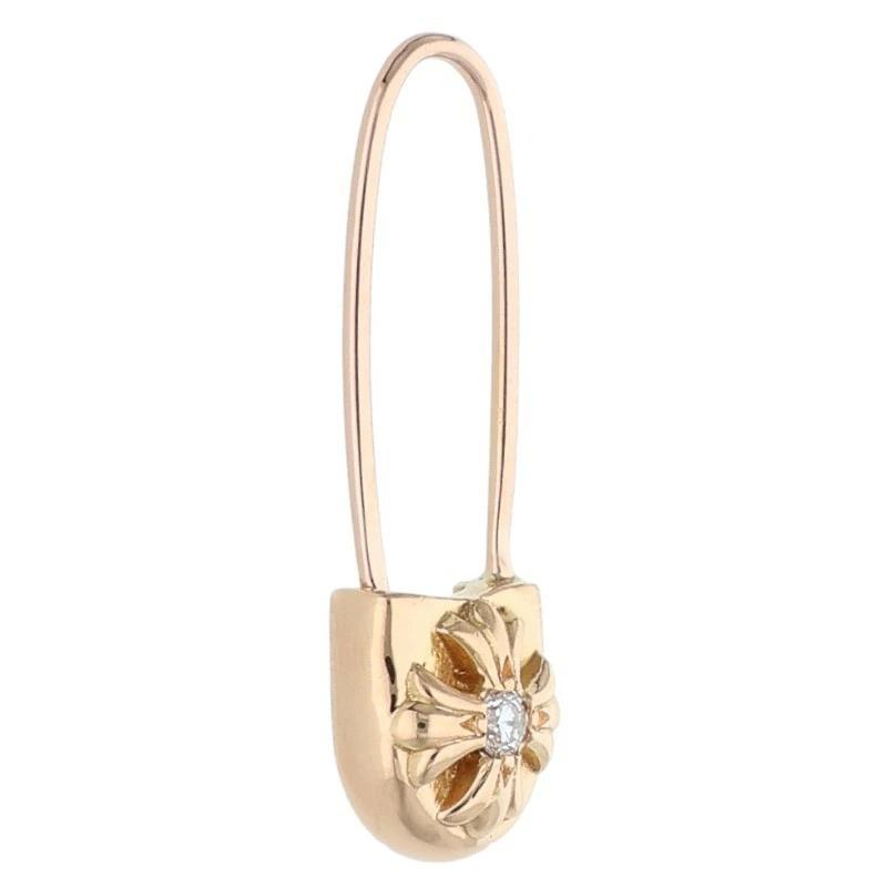 Chrome Hearts 22K ER SAFETY PIN DIA Safety Pin with 1 Diamond Gold Earrings (Yellow Gold and Clear, 3.07g) [411152] [SJ02] [Accessories] [Pre-owned] bb396#rinkan*B