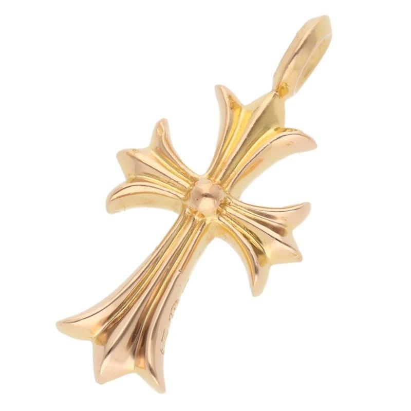 Chrome Hearts 22K TNY CRSF P DMND Tiny Fat Cross Pave Diamond Pendant Gold Necklace Top (Yellow Gold and Clear, 10.48g) [321152] [SJ02] [Accessories] [Pre-owned] bb212#rinkan*B