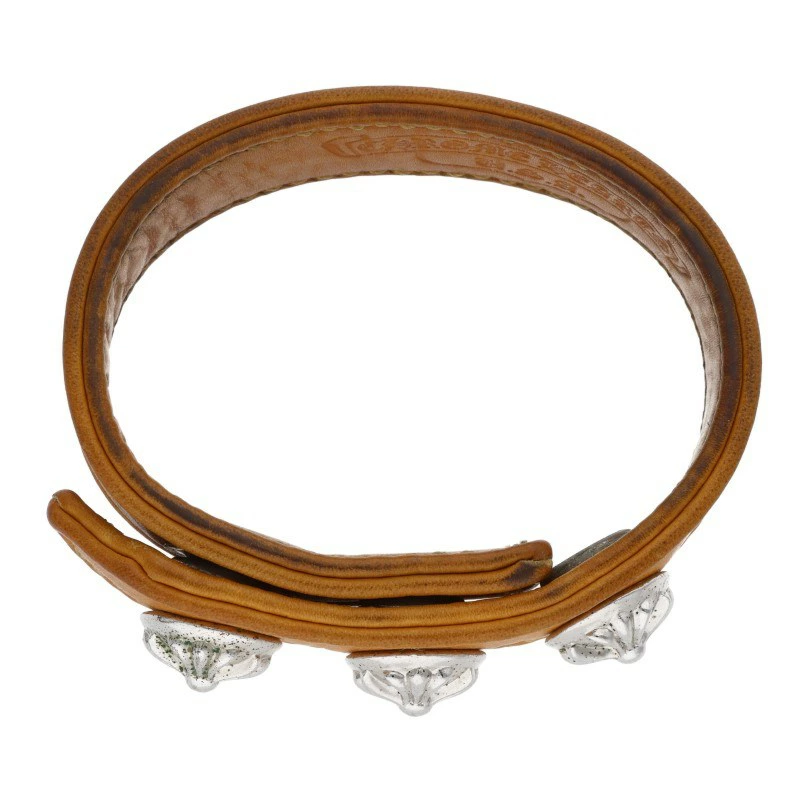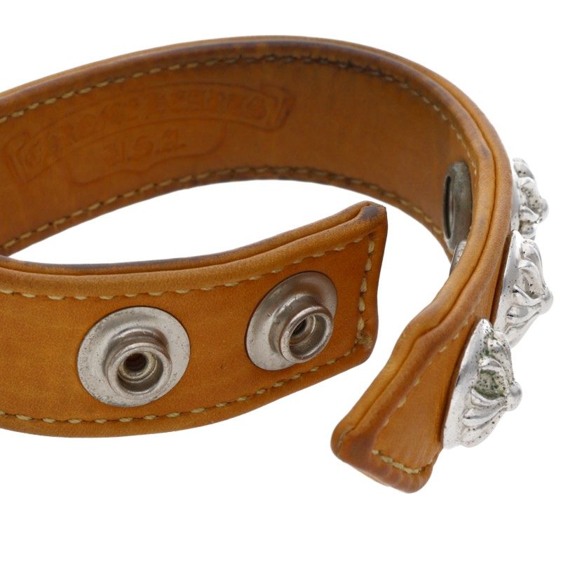 Chrome Hearts 3BTN 2SNP Crossball 3-Button 2-Snap Leather Bracelet (Orange Tone, Total Weight 31.38g) [914062] [SS07] [Accessories] [Used] bb434#rinkan*B