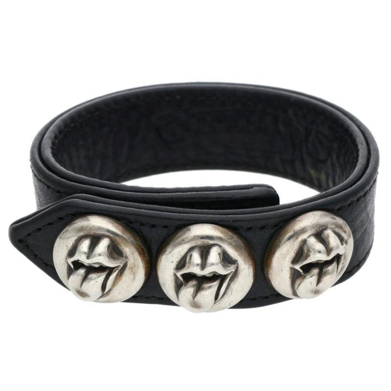 Chrome Hearts 3BTN 2SNP Rip and Tongue 3-Button 2-Snap Leather Bracelet (Silver and Black, Total Weight 53.37g) [721152] [NO05] [Accessories] [Pre-owned] bb432#rinkan*B