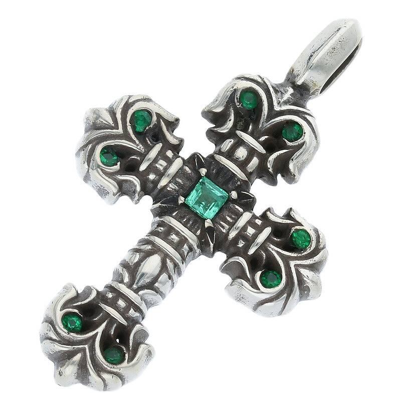 Chrome Hearts CHARM FILIGREE TINY P EMRLD Tiny Filigree Pave Emerald Top (Silver x Green 5.18g) [229052] [SJ02] [Accessories] [Pre-owned] bb82#rinkan*A