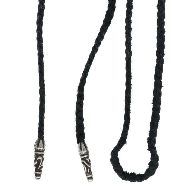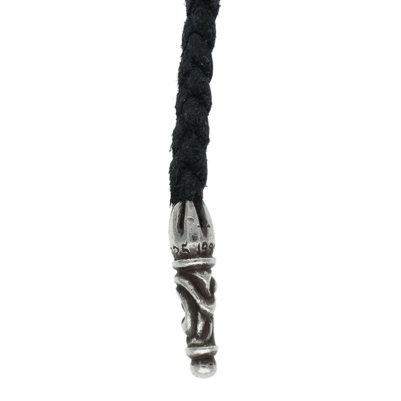 Chrome Hearts LEATHER BRAID Scroll Leather Braid Silver Necklace (Black and Silver, Total Weight 12.59g) [811152] [OS06] [Accessories] [Pre-owned] bb214#rinkan*B