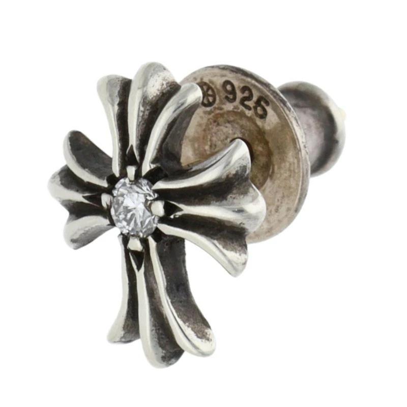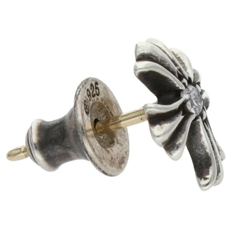 Chrome Hearts No. 2 CH CRS A DIA CH Cross Stud 1 Diamond Silver Earrings (Silver x Clear 0.76g) [903062] [GZ11] [Accessories] [Pre-owned] bb92#rinkan*B