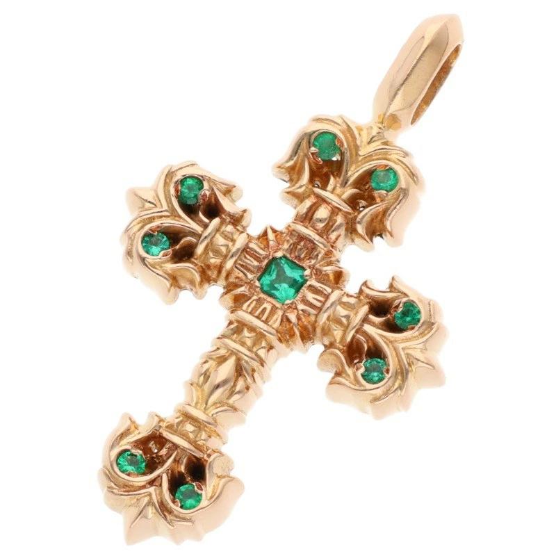 Chrome Hearts Size: 0 22K CHARM FILIGREE TINY P EMERALD PAVE Emerald/Gold Necklace Top