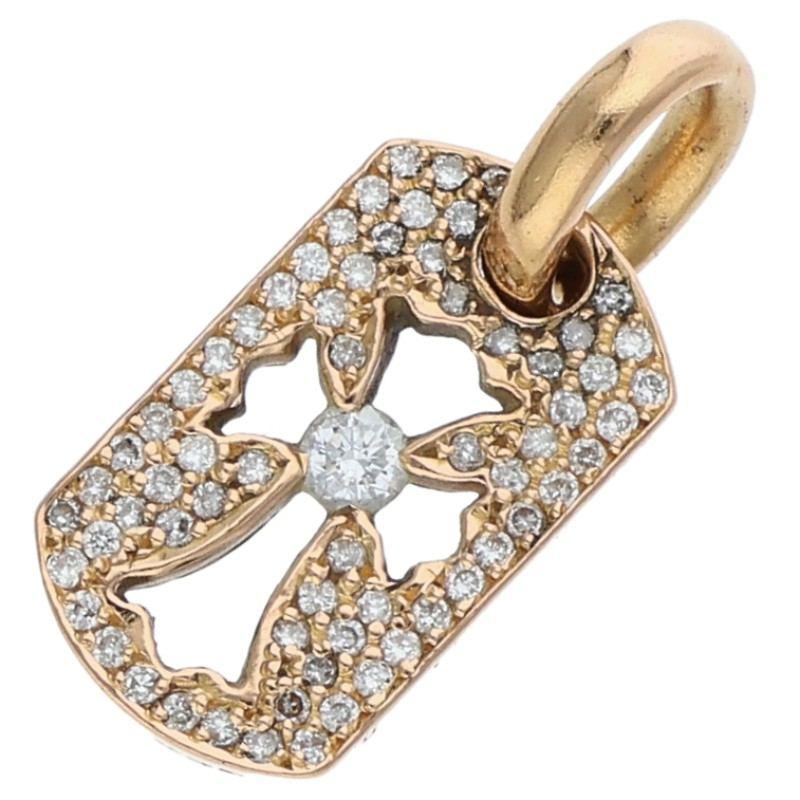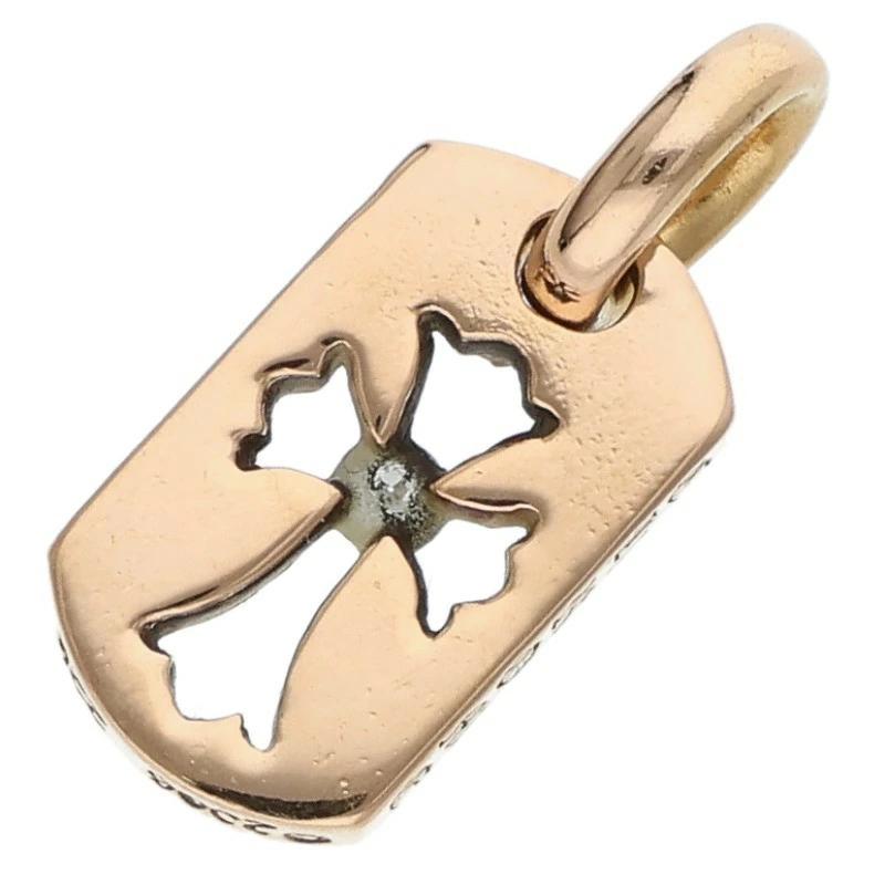 Chrome Hearts ChromeHearts Size: - 0 22K DT TNY CO CRS P/D Tiny Cutout Cross Dog Tag with Center Pave Diamond Charm and Gold Necklace Top