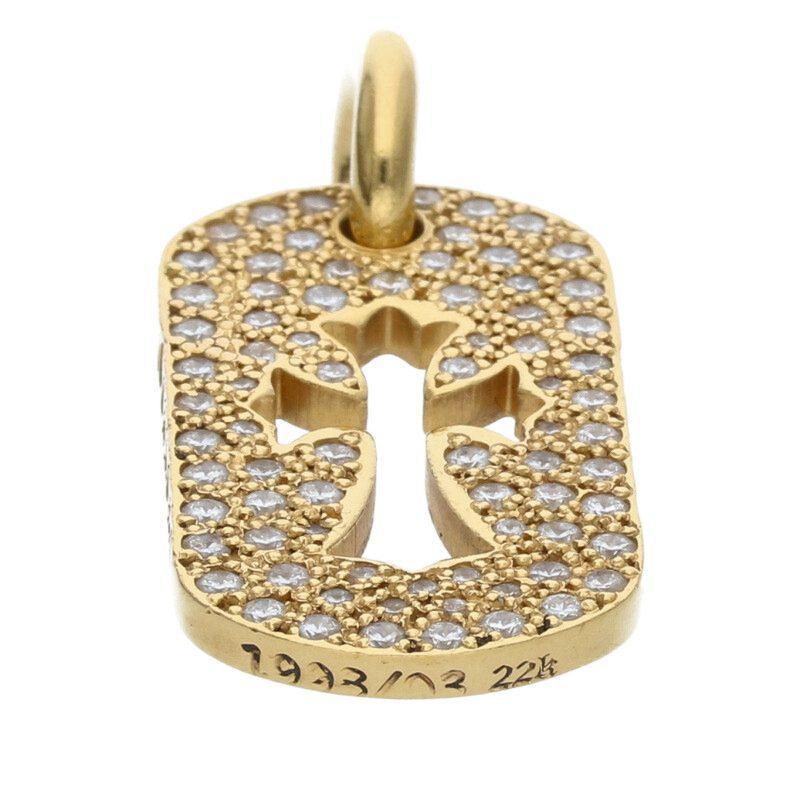 ランク:B (使用感がある商品)状態備考:所々に傷がありますブランド:クロムハーツサイズ:-色:イエローゴールド×クリア実寸:横1.7cm 縦3.7cm重さ:16.36g素材:22K付属品:なしその他特徴:-管理番号:15162-250814-0350