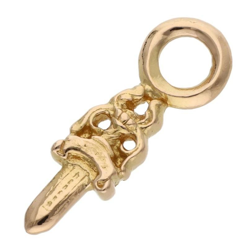ランク:B (使用感がある商品)状態備考:所々に擦れがあります摩耗していますブランド:クロムハーツサイズ:-色:イエローゴールド実寸:横0.7cm 縦2.1cm重さ:1.95g素材:22K付属品:なしその他特徴:-管理番号:15162-251002-0050