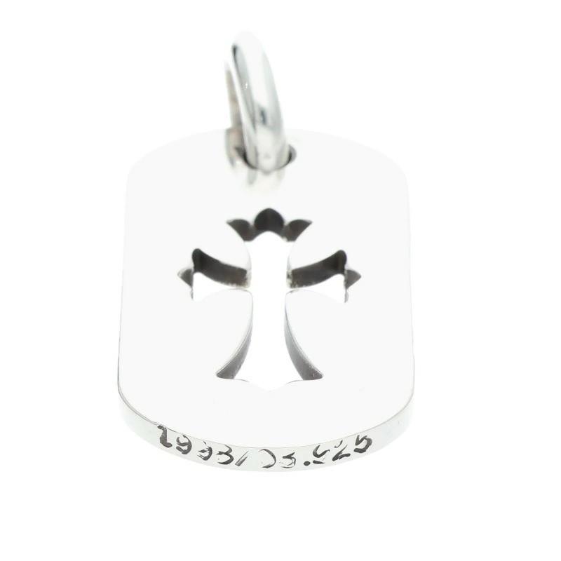 ランク:B (使用感がある商品)状態備考:所々に小傷、擦れがあります刻印の一部が薄れていますブランド:クロムハーツサイズ:-色:シルバー実寸:横1.7cm 縦3.7cm重さ:9.37g素材:925付属品:なしその他特徴:-管理番号:15162-250924-0357
