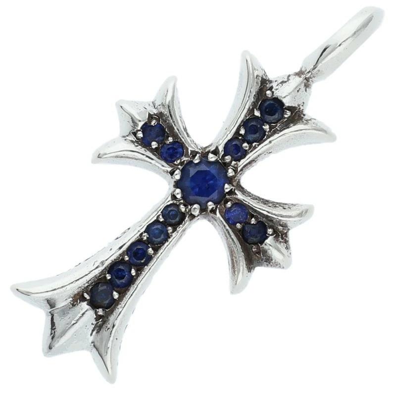 Chrome Hearts ChromeHearts Size:- 0 TNY CRSF P/SAP/Tiny Fat Cross PAVE Sapphire/Pendant/Top
