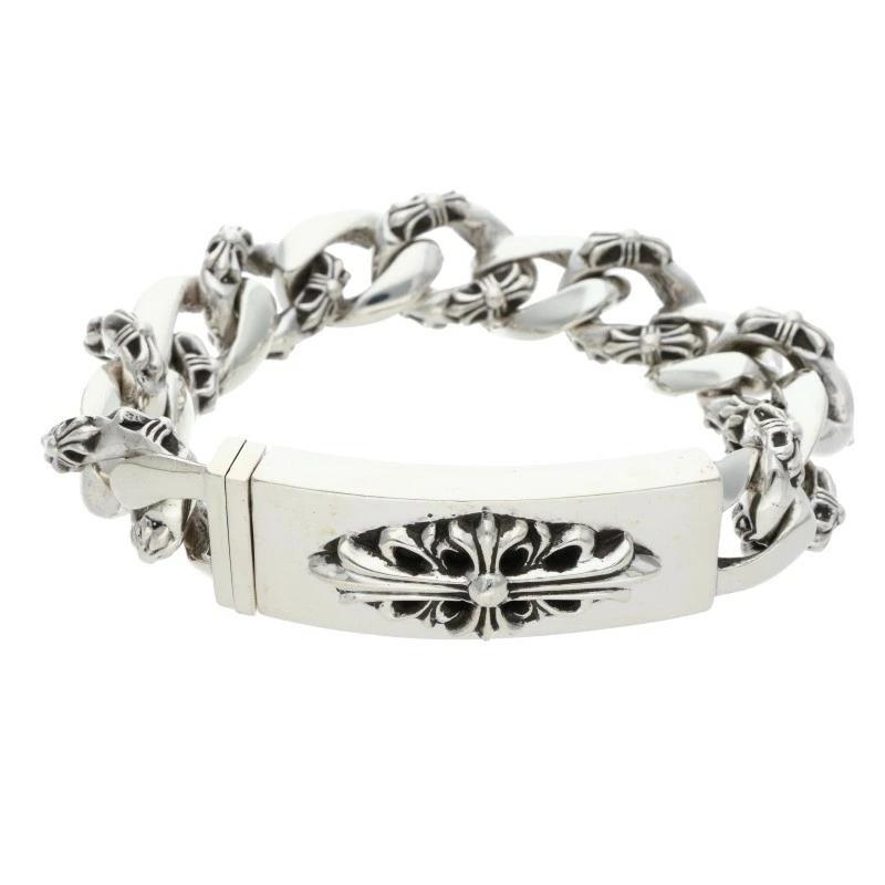 Chrome Hearts Size: 13LINK 0 ID FLORAL CRS/Floral ID Fancy Silver Bracelet