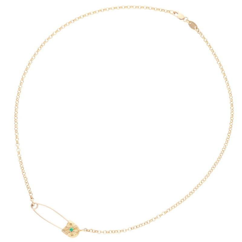 Chrome Hearts ChromeHearts Size: 16 inch 0 22K SAFETY PIN EMRLD R16 / Safety Pin 1 Emerald Gold Necklace