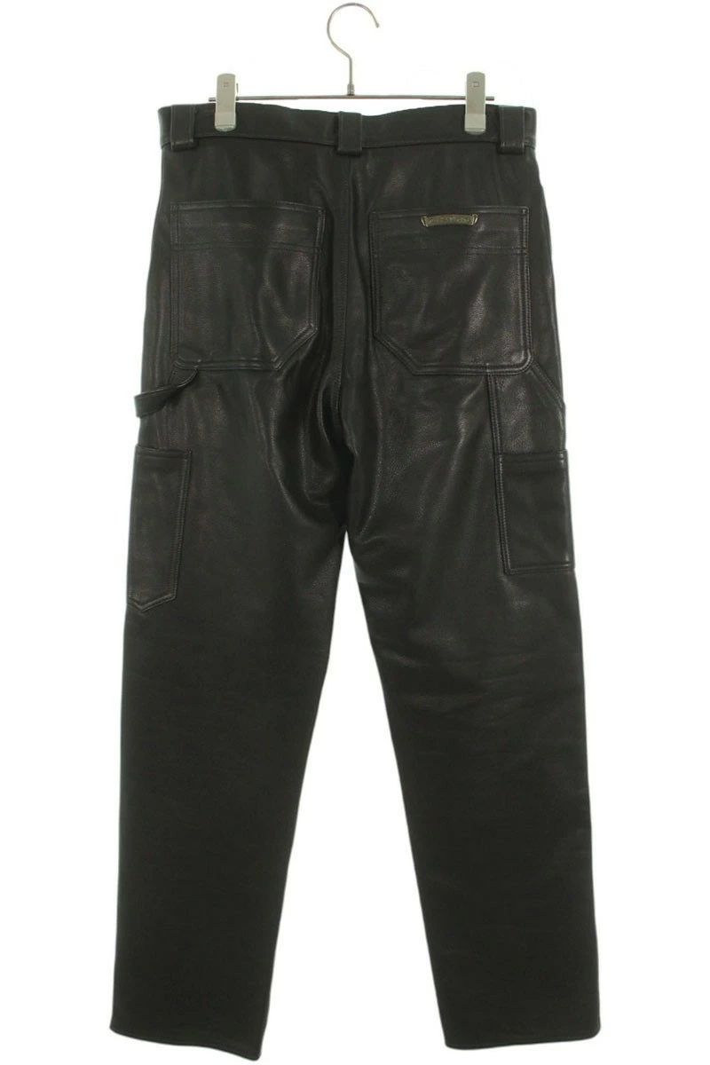 Chrome Hearts ChromeHearts Size: 29 inch 0 LTHR PANTS/Leather Pants Cross Ball Button Flare Knee Leather Long Pants