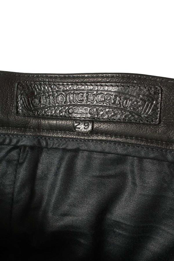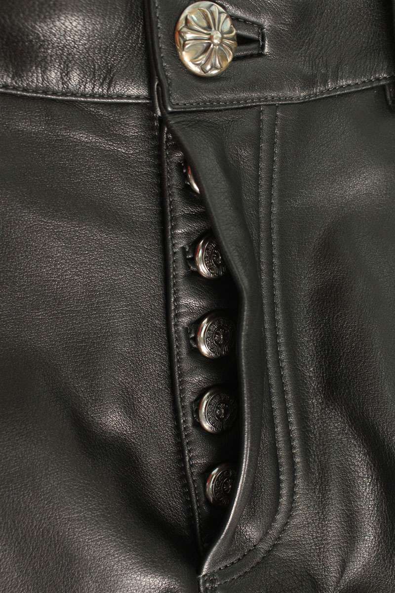 ランク:A (使用感が少ない商品)状態備考:-ブランド:クロムハーツサイズ:29インチ色:ブラック×シルバー実寸:ウエスト幅37.5cm 股上30.5cm ワタリ幅30cm 股下78.5cm 裾幅18cm重さ:-素材:(表地) 山羊革 (裏地) コットン付属品:なしその他特徴:ボタンフライデザインです管理番号:10829-250520-0120