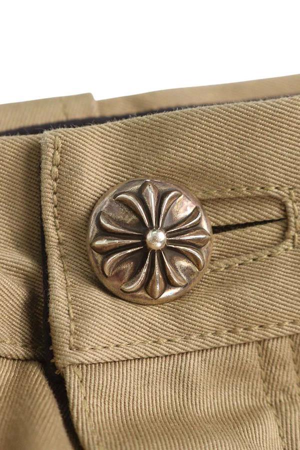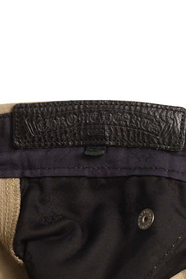 ランク:B (使用感がある商品)状態備考:裾上の所々に若干の汚れがありますウエスト内側、裾に若干の擦れがありますブランド:クロムハーツサイズ:32インチ色:ベージュ×ピンク実寸:ウエスト幅41.5cm 股上32cm ワタリ幅34.5cm 股下76cm 裾幅21.5cm重さ:-素材:(表地)(裏地) コットン (革部分) 牛革付属品:なしその他特徴:ボタンフライデザインです管理番号:10829-251022-0030