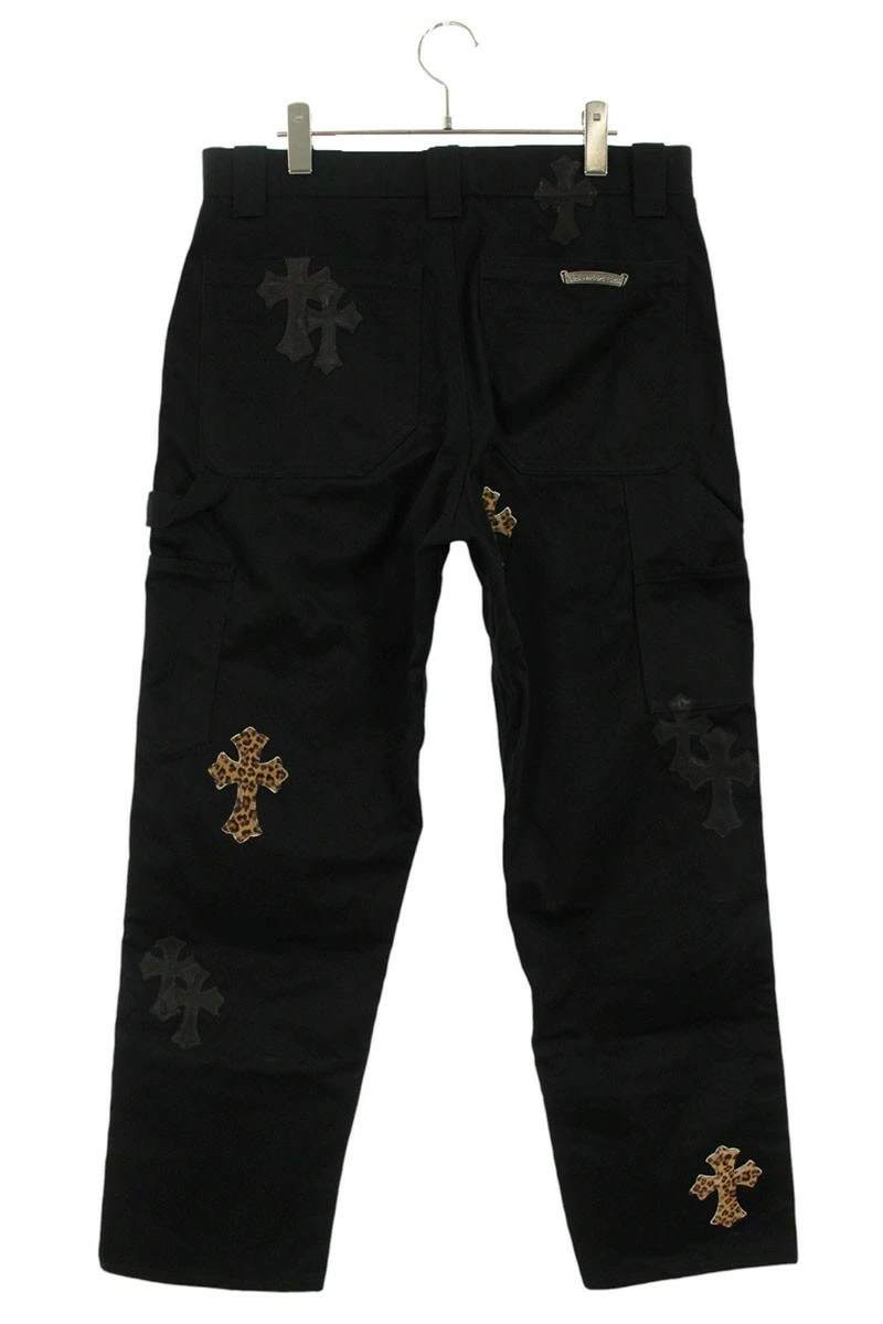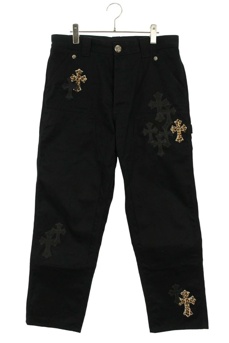 ランク:B (使用感がある商品)状態備考:全体的に擦れがありますブランド:クロムハーツサイズ:32インチ色:ブラック×シルバー×ブラウン調実寸:ウエスト幅41.5cm 股上31cm ワタリ幅34.5cm 股下76cm 裾幅22cm重さ:-素材:(本体) コットン (皮革1) 牛毛皮 (皮革2) 羊革付属品:なしその他特徴:ボタンフライデザインです管理番号:10829-250918-0310