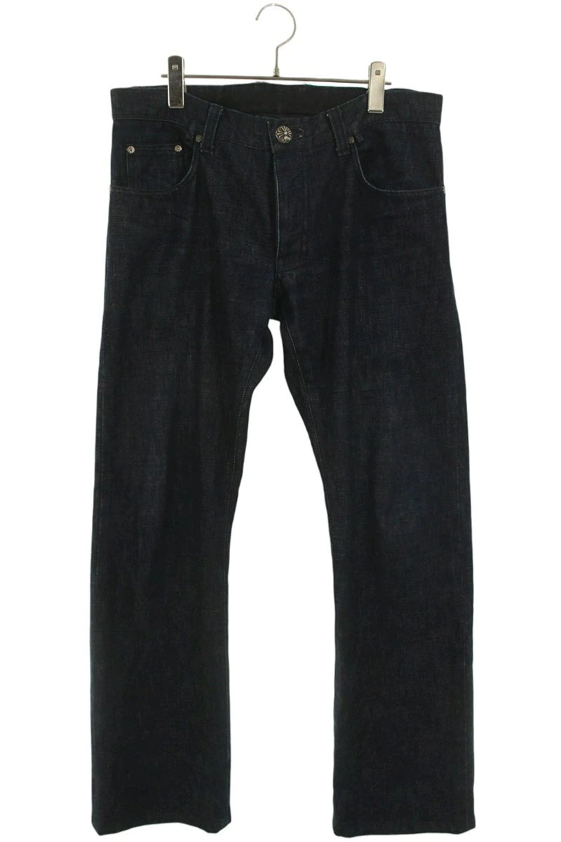 ランク:B (使用感がある商品)状態備考:全体的に擦れや毛羽立ちがありますブランド:クロムハーツサイズ:33インチ色:インディゴ×シルバー実寸:ウエスト幅42cm 股上23cm ワタリ幅30cm 股下82cm 裾幅21cm重さ:-素材:コットン付属品:なしその他特徴:ボタンフライデザインです管理番号:10831-250801-0068