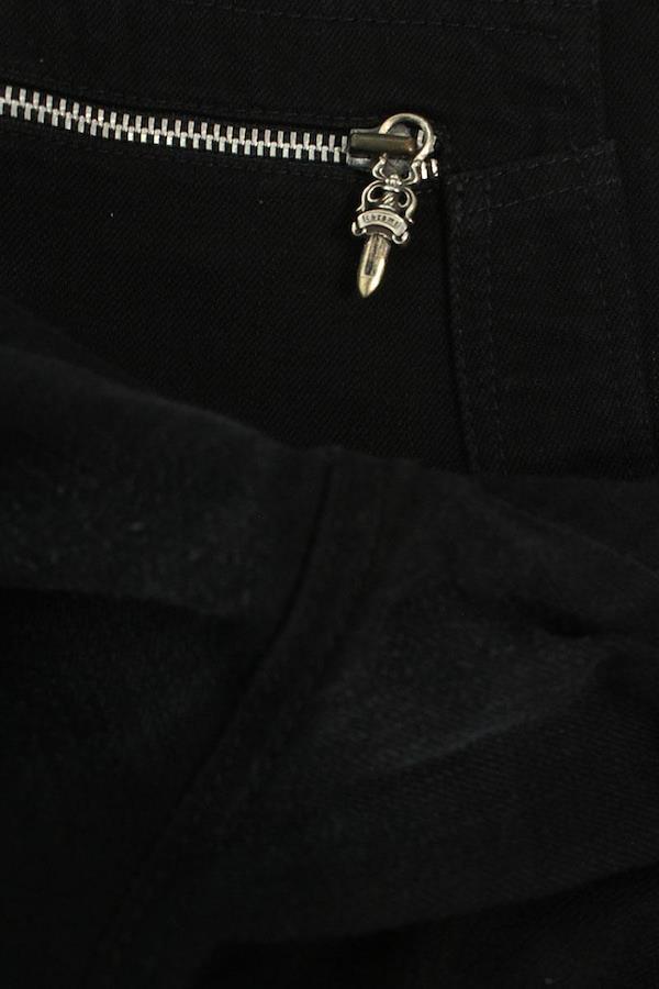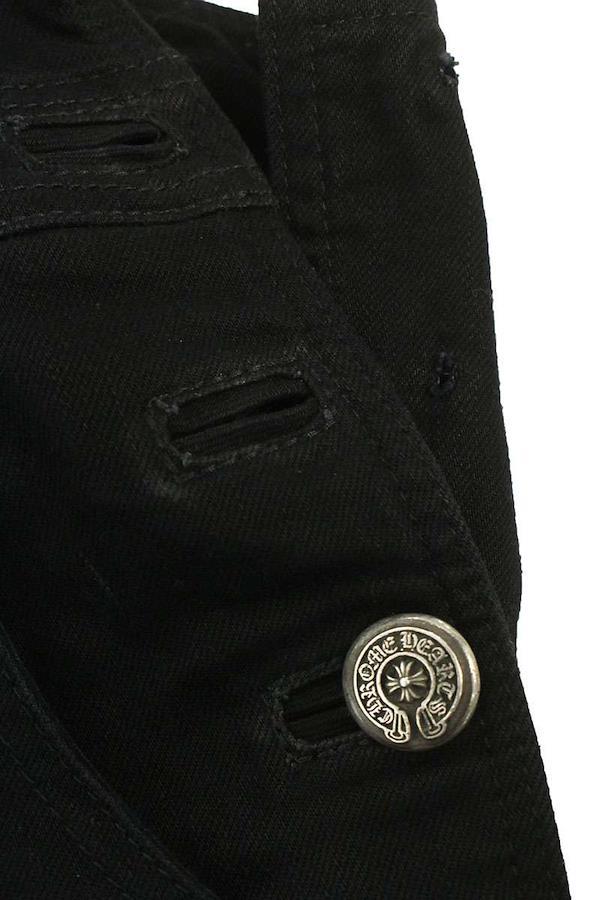 ランク:C (ダメージ、汚れが目立つ商品)状態備考:金具、ボタン等が欠損、破損しています股部分に擦れ、毛羽立ちがあります所々に汚れがありますブランド:クロムハーツサイズ:33inch色:ブラック×シルバー実寸:肩幅26.5cm 身幅44cm 総着丈155cm ワタリ幅33cm 股下81cm 裾幅24cm重さ:-素材:コットン付属品:なしその他特徴:ボタンフライデザインです・金具やボタンが欠損、破損している為、採寸は多少の誤差が生じますことご了承ください