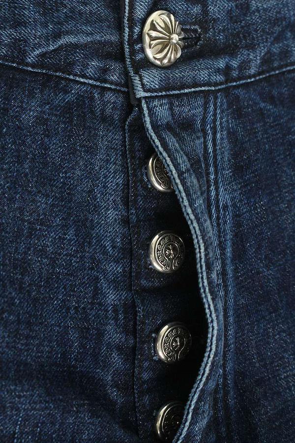 ランク:S (新古品)状態備考:-ブランド:クロムハーツサイズ:34インチ色:インディゴ×シルバー実寸:ウエスト幅44cm 股上34.5cm ワタリ幅36.5cm 股下80.5cm 裾幅22cm重さ:-素材:コットン付属品:なしその他特徴:ボタンフライデザインです管理番号:10831-250912-0054