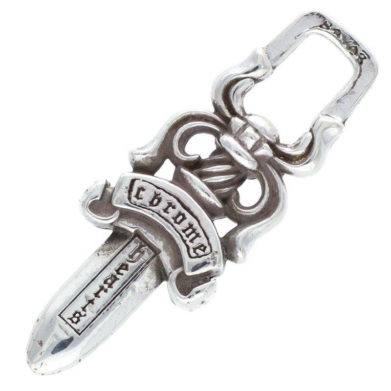 ランク:B (使用感がある商品)状態備考:所々に打痕、小傷、擦れがあります刻印の一部が薄れていますカン部分が摩耗していますブランド:クロムハーツサイズ:#5色:シルバー実寸:横1.2cm 縦3.5cm重さ:5.9g素材:925付属品:なしその他特徴:-管理番号:15162-250921-0215