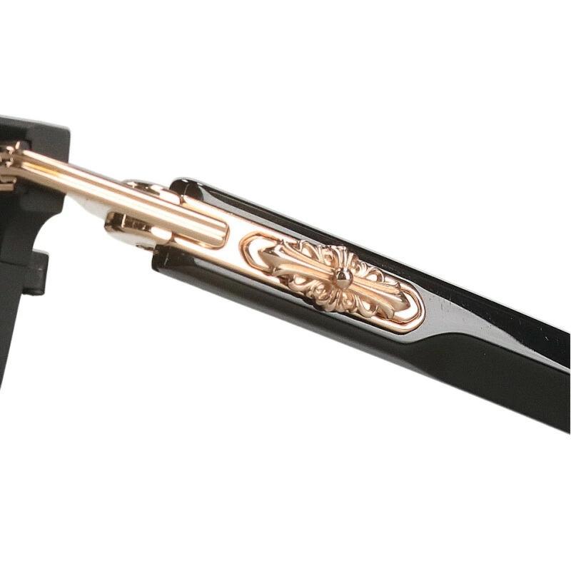 ブランド:クロムハーツサイズ:56□18-146色:(フレーム)ブラック×ゴールド実寸:横14.7cm 縦3.8cm アーム14.8cm重さ:-素材:表記なし付属品:なしその他特徴:-管理番号:15270-251021-0229