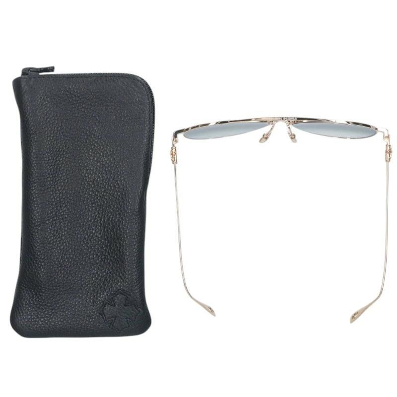 ランク:A (使用感が少ない商品)状態備考:アームに若干の歪みがありますブランド:クロムハーツサイズ:60□15 149色:(フレーム)ゴールド×ブラック調実寸:横15.1cm 縦5.6cm アーム15.2cm重さ:-素材:表記なし付属品:ケースありその他特徴:ケースダガー部分が破損しています管理番号:15270-250907-0558