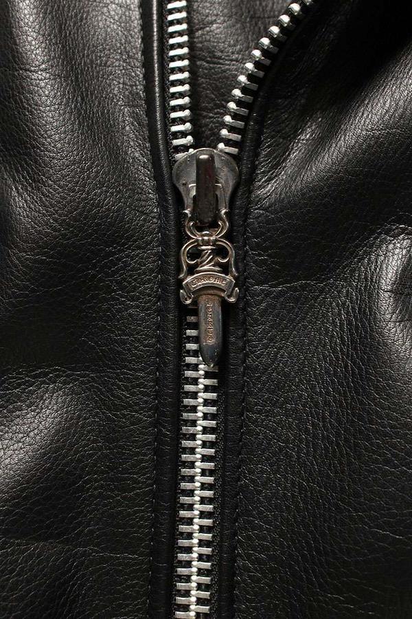 ランク:B (使用感がある商品)状態備考:全体的に擦れや毛羽立ちがありますブランド:クロムハーツサイズ:L色:ブラック×シルバー実寸:肩幅49cm 身幅53cm 着丈63cm 袖丈68cm重さ:-素材:(表地) 牛革 (裏地) コットン付属品:なしその他特徴:-管理番号:10103-251106-0383