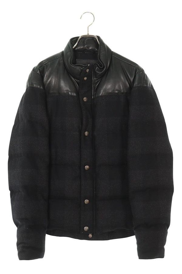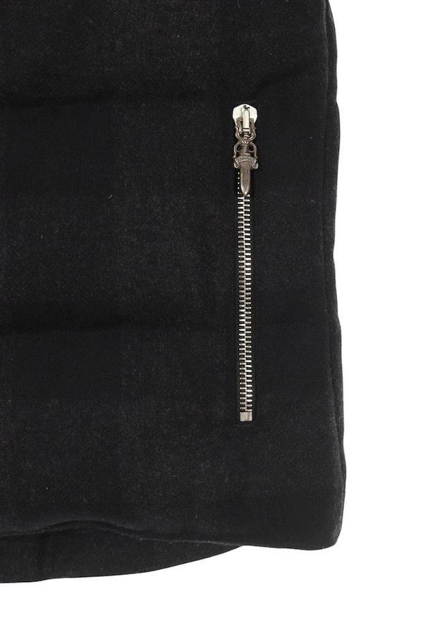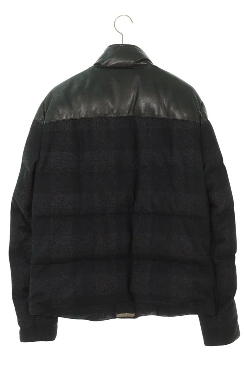 素材:(表地) ウール80%、ナイロン20% (裏地) シルク (中綿) ダウン90%、フェザー10% (リブ) カシミヤ (皮革部分) 羊革
