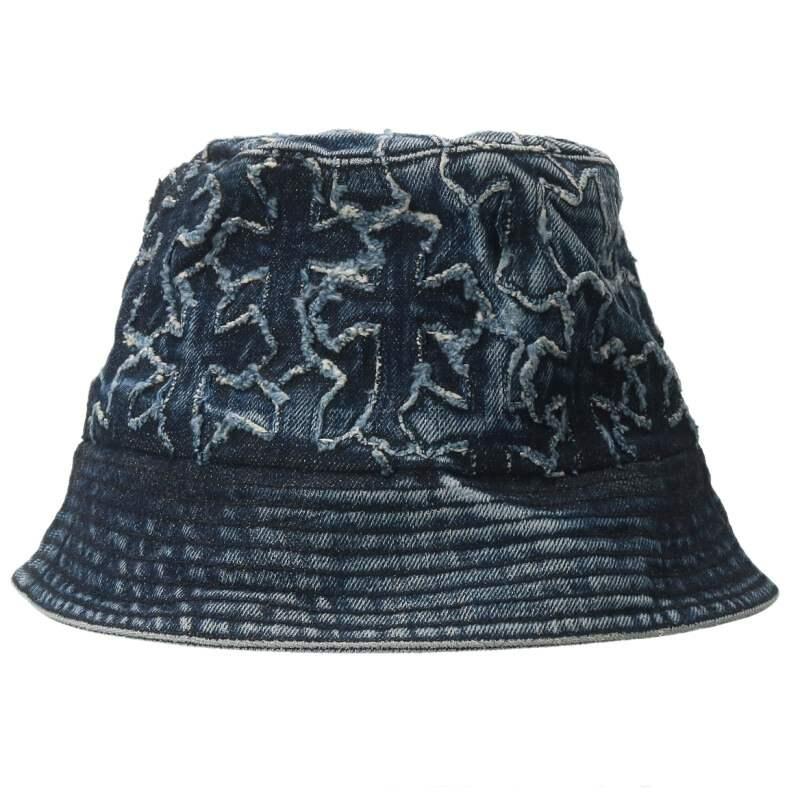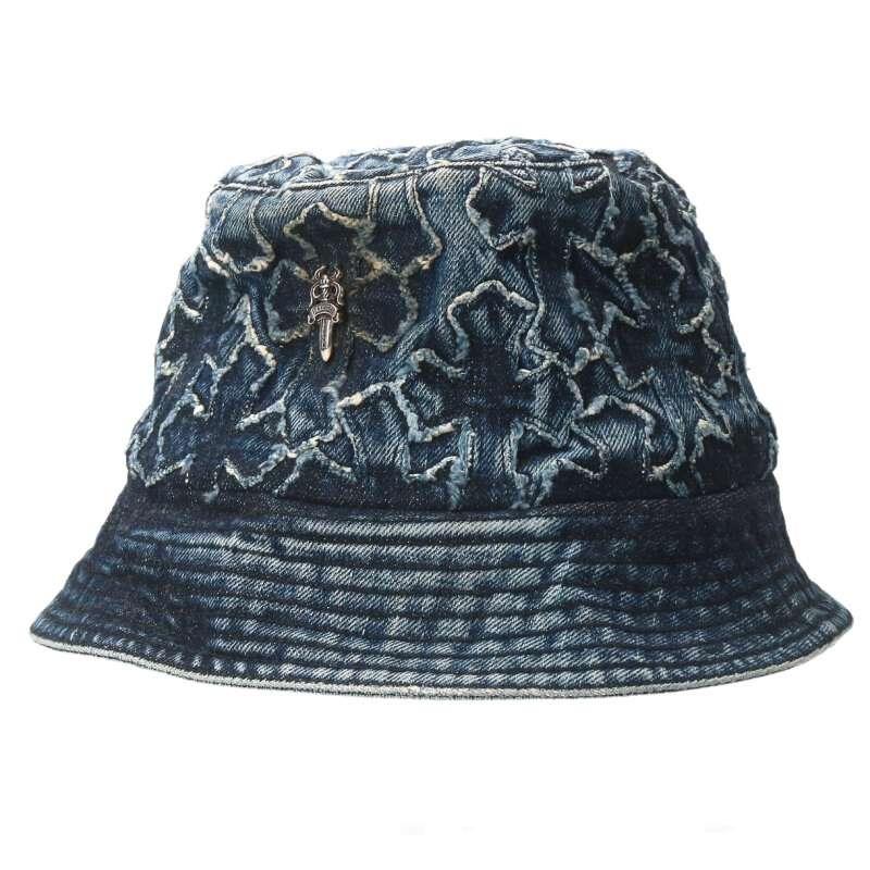 ランク:B (使用感がある商品)状態備考:表面に汚れがありますブランド:クロムハーツサイズ:L色:インディゴ×シルバー実寸:頭囲57.5cm ツバ5.5cm 高さ10cm重さ:-素材:(表地) コットン (裏地) シルク (皮革部分) 牛革付属品:なしその他特徴:-管理番号:15266-251019-0057