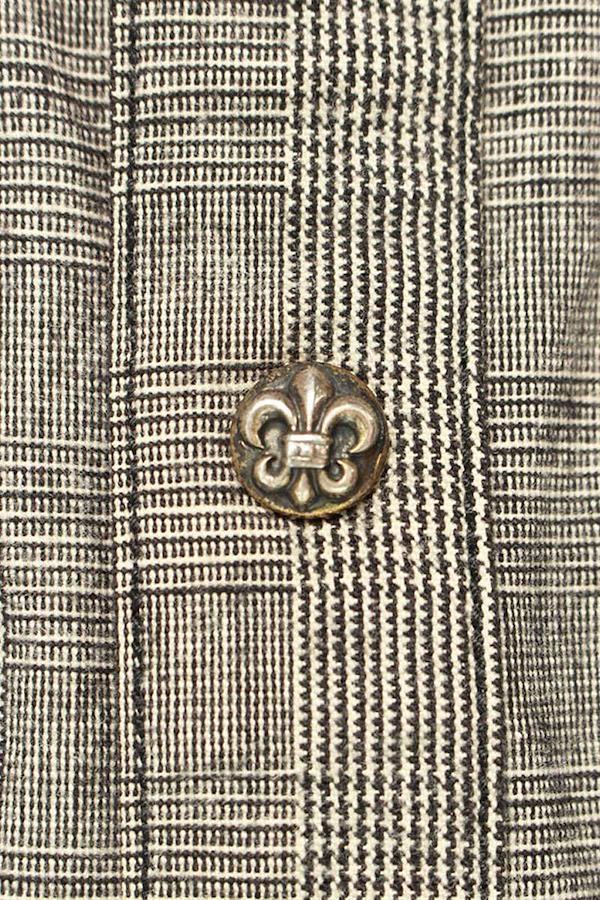 ランク:B (使用感がある商品)状態備考:フロント左脇、左脇付近、襟元等に汚れがあります全体的に若干の毛羽立ちがありますブランド:クロムハーツサイズ:M色:グレー×シルバー実寸:肩幅45cm 身幅53cm 着丈74cm 袖丈65cm重さ:-素材:(表地) コットン79%、リネン21% (別布1) 牛革 (別布2) 羊革付属品:なしその他特徴:-管理番号:10312-250711-0011