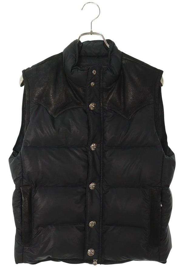 ランク:C (ダメージ、汚れが目立つ商品)状態備考:内側ポケットのダガージップが2ヶ所欠損しています首元に擦れがありますバック中央付近に汚れがあります縫い目の所々に若干の毛羽立ちがありますブランド:クロムハーツサイズ:M色:ブラック×シルバー実寸:肩幅41.5cm 身幅51.5cm 着丈61cm重さ:-素材:(表地) ポリエステル79%、コットン21% (裏地) シルク (中綿) ダウン70%、フェザー30% (皮革部分) やぎ革付属品:なしその他特徴:-管理番号:10105-250412-0024