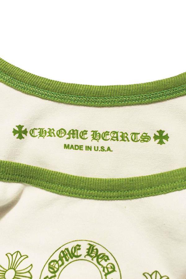 ランク:S (新古品)状態備考:-ブランド:クロムハーツサイズ:S色:オフホワイト調×グリーン実寸:肩幅23.5cm 身幅36cm 着丈36.5cm重さ:-素材:(表地) コットン92%、ポリウレタン8% (リブ) コットン付属品:なしその他特徴:-管理番号:50521-251102-0046