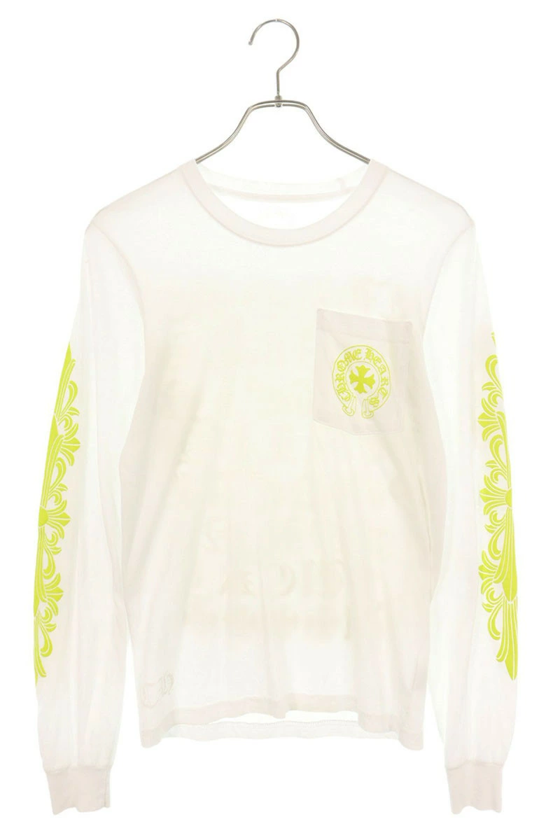 ランク:B (使用感がある商品)状態備考:フロント右袖上部、左中央に汚れがあります全体的に若干の擦れ、毛羽立ちがありますブランド:クロムハーツサイズ:XS色:ホワイト×イエロー実寸:肩幅38.5cm 身幅41cm 着丈62.5cm 袖丈69cm重さ:-素材:コットン付属品:なしその他特徴:-管理番号:50518-250912-0069