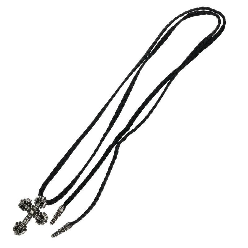 Chrome Hearts ChromeHearts Size: XS 0 FILIG/CROSS-XSM LB/Filigree Cross XS w Leather Braid/Silver Necklace