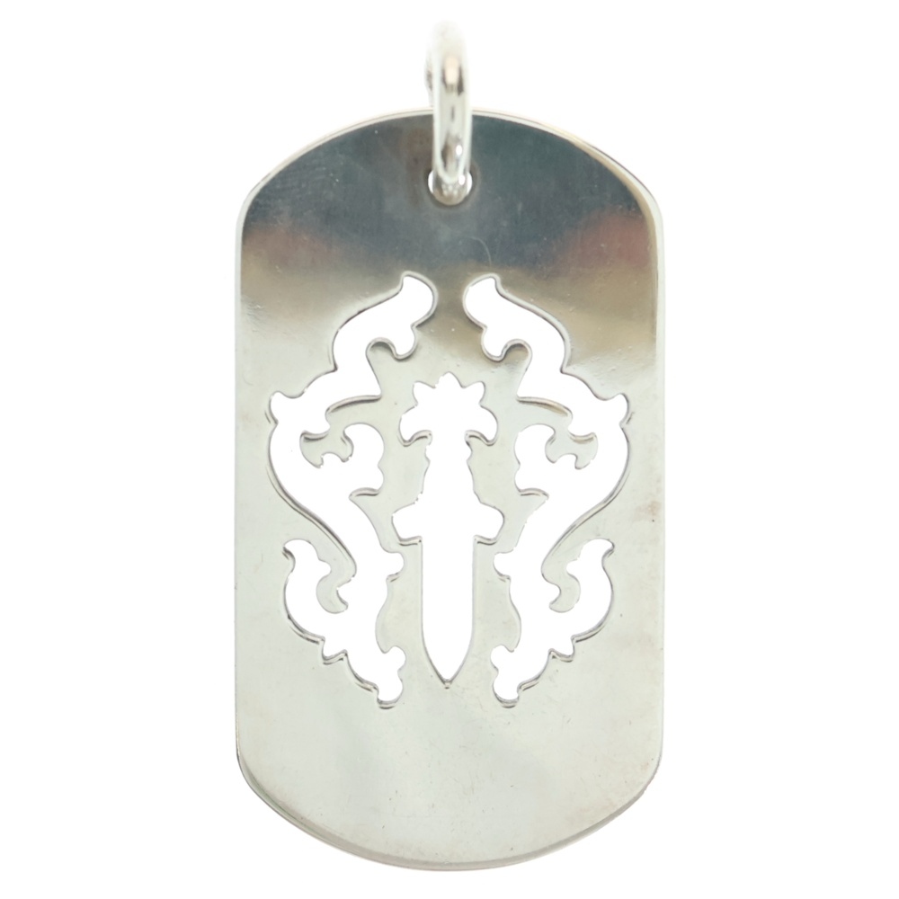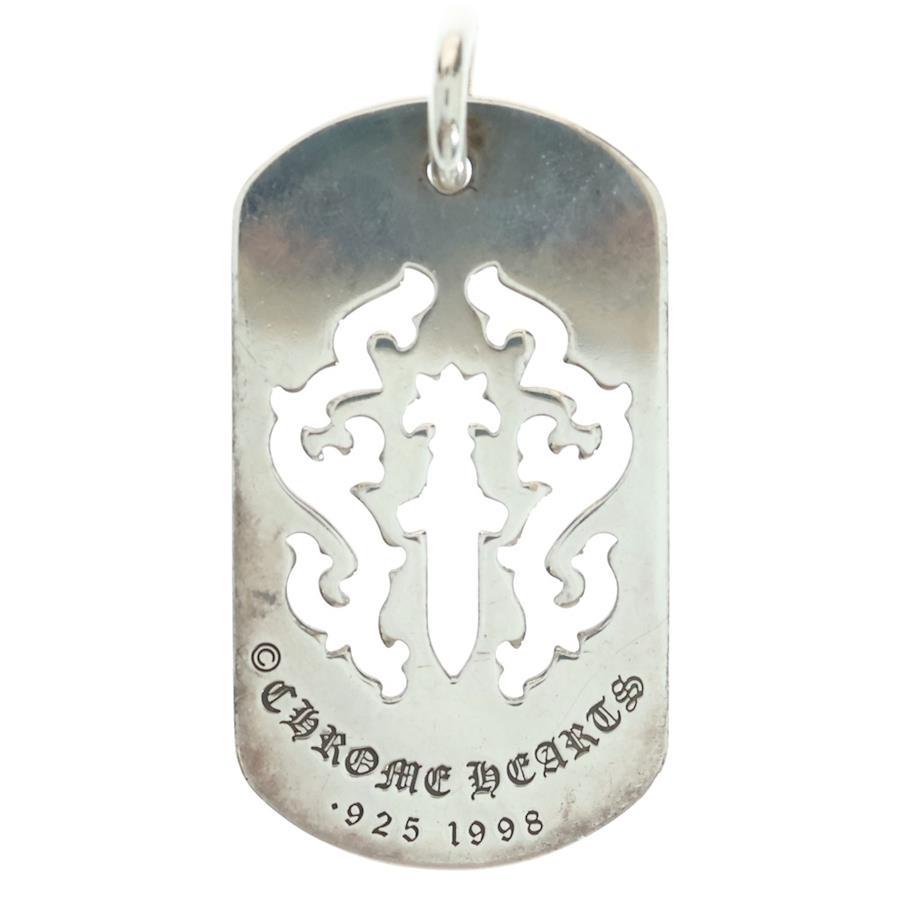 ■商品情報[商品番号]1025I140009[ブランド]CHROME HEARTS(クロムハーツ)[モデル]D TAG LRG DAGGER ヴァインダガーカットアウトドッグタグ ラージ ペンダントトップ シルバー BCA240[サイズ]縦幅:50.90ミリ(丸カン除く) 横幅:28.59ミリ 重さ:16.69グラム表記サイズ:ラージ■状態・コンディション[状態ランク]ランク B使用感有り全体に小傷有り