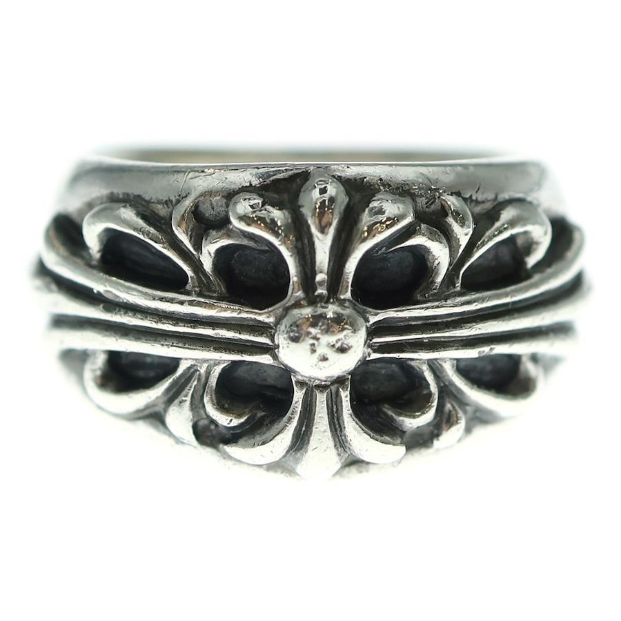 Chrome Hearts FLRL CRS Floral Cross Ring, Silver, BCA346, Size 16.5