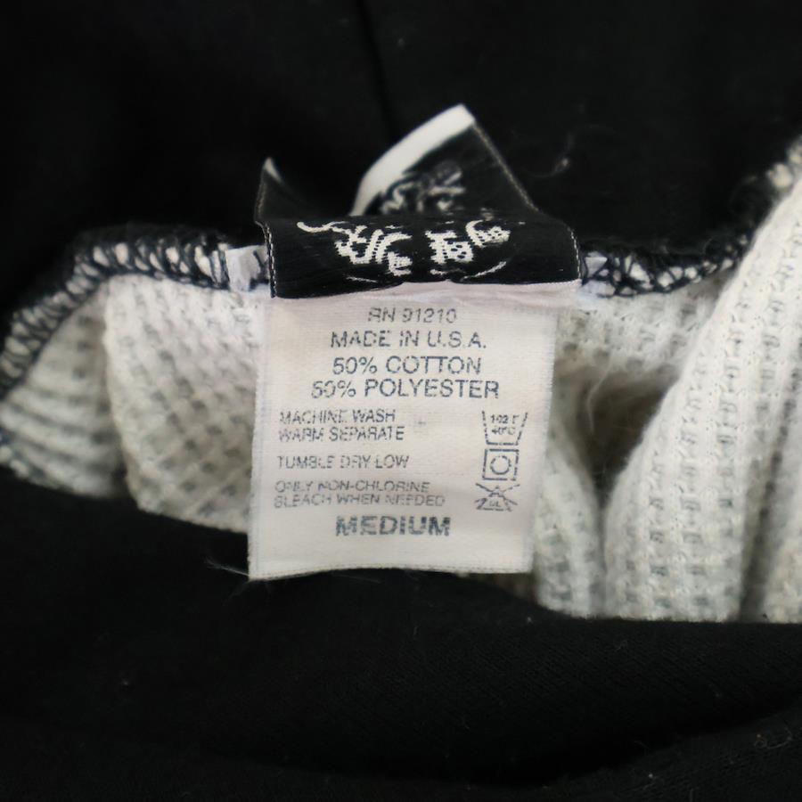 [モデル]OLD スクロールラベルプリント サーマル裏地 プルオーバーパーカー フーディー ブラック
