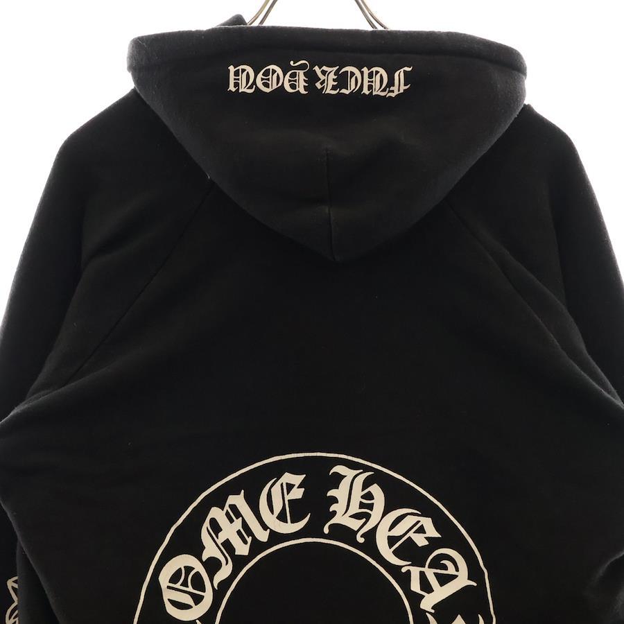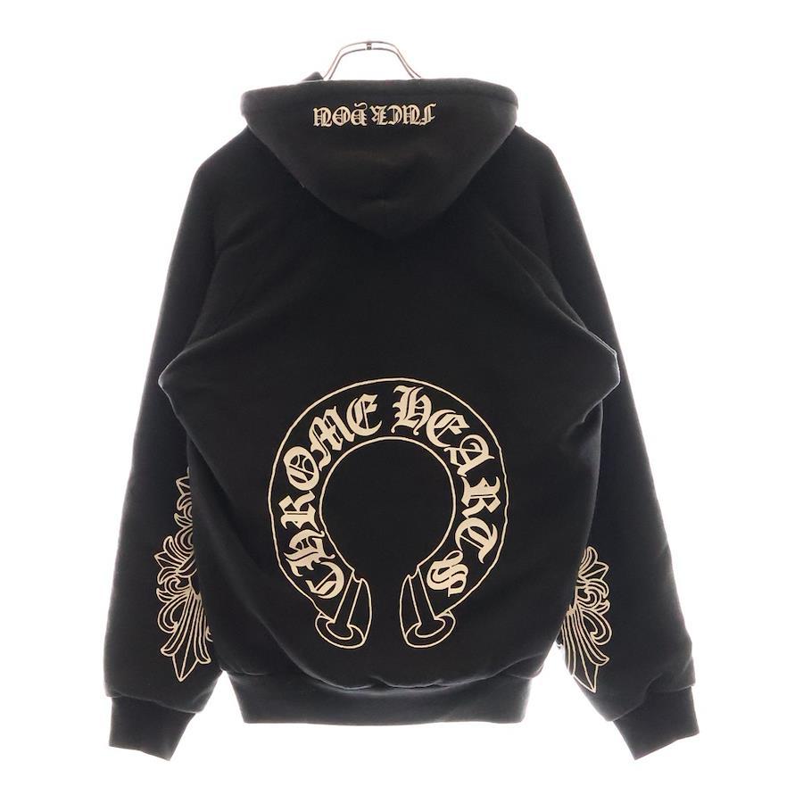 [モデル]OLD SWTSHRT PLVR オールドモデル 袖フローラル ホースシュープリント サーマル裏地プルオーバーパーカー ブラック