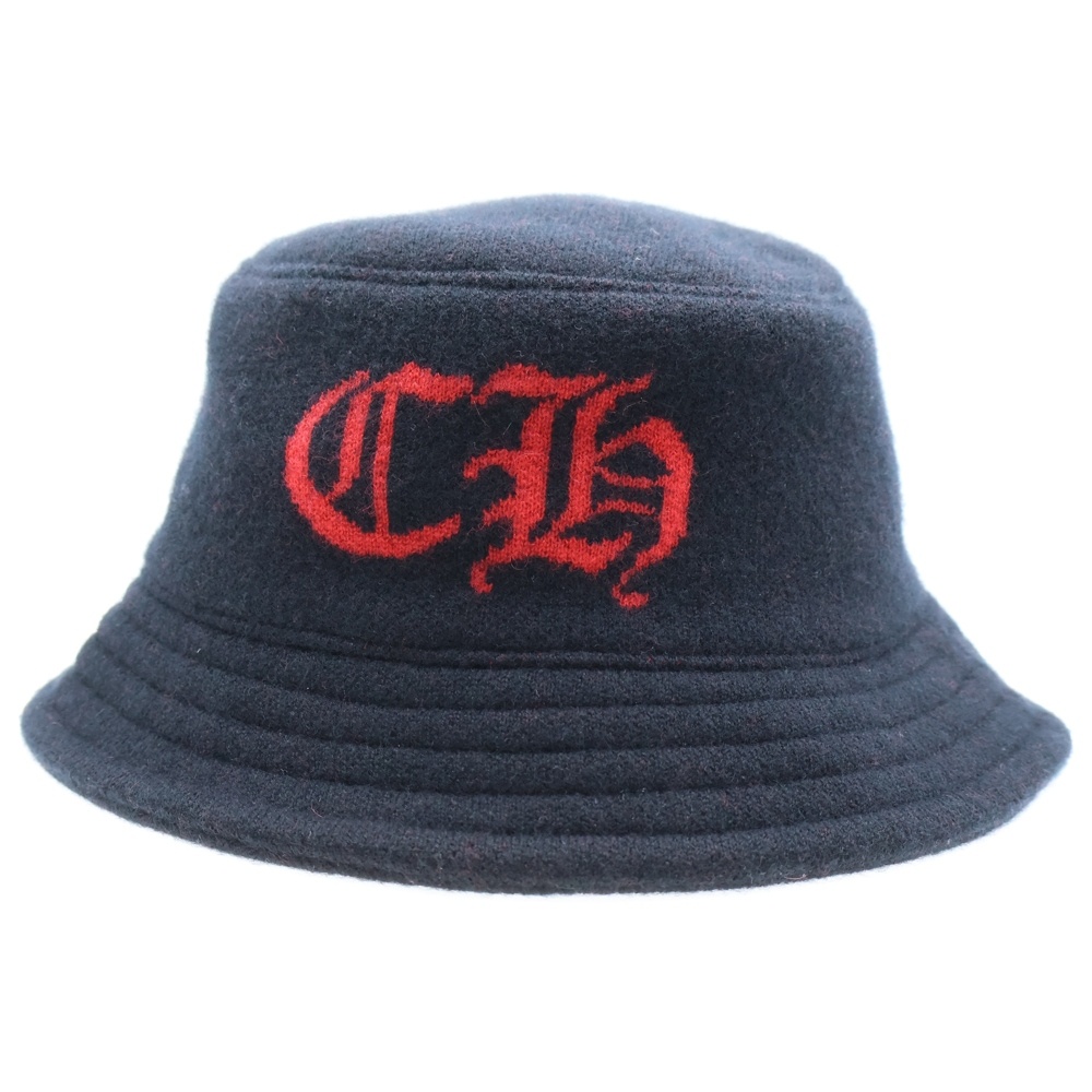 [モデル]U BUCKET JACOUARD KNIT CH CHロゴ カシミアバケットハット ブラック/レッド