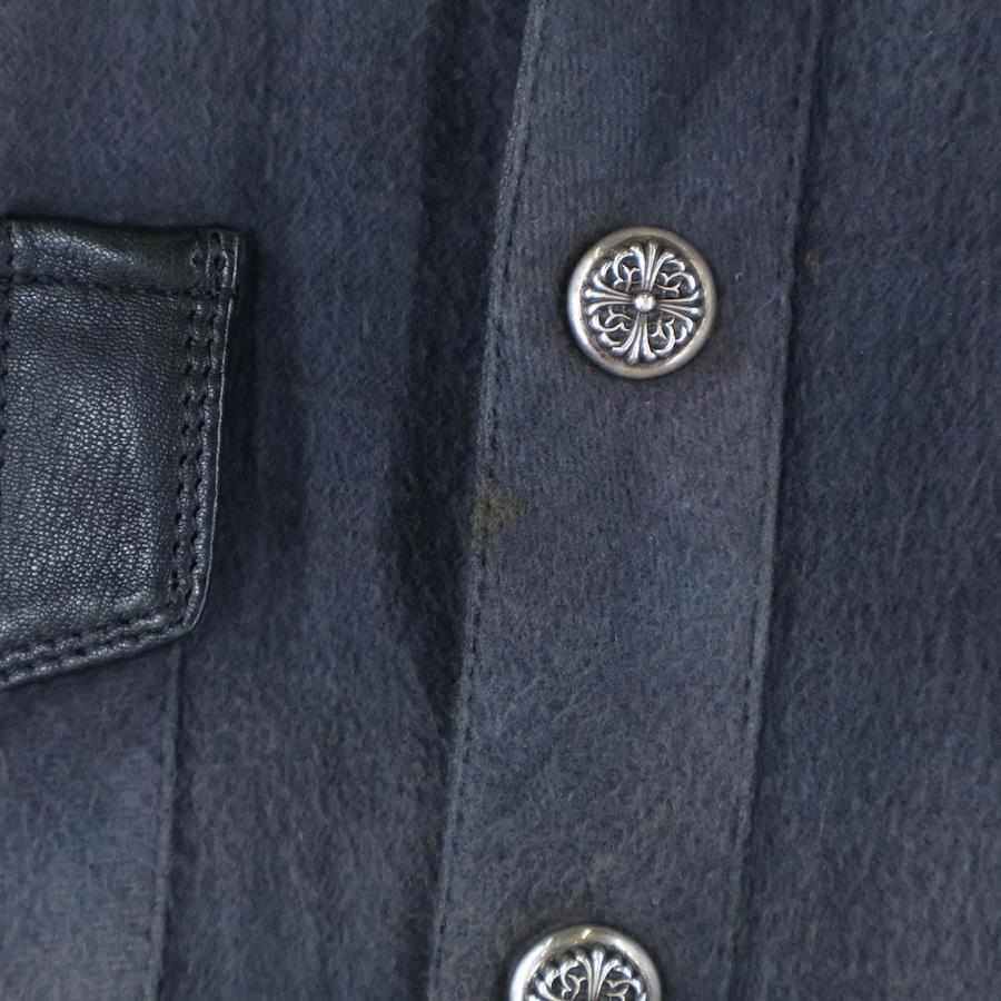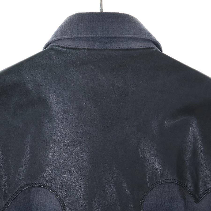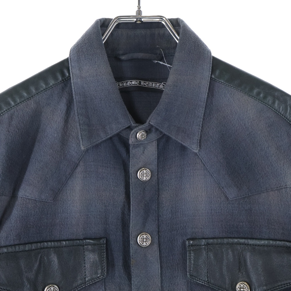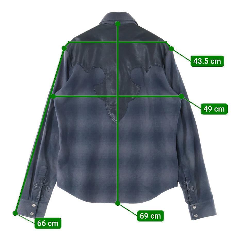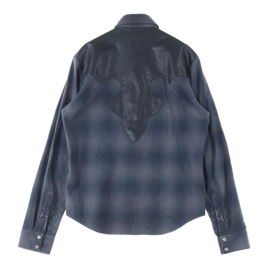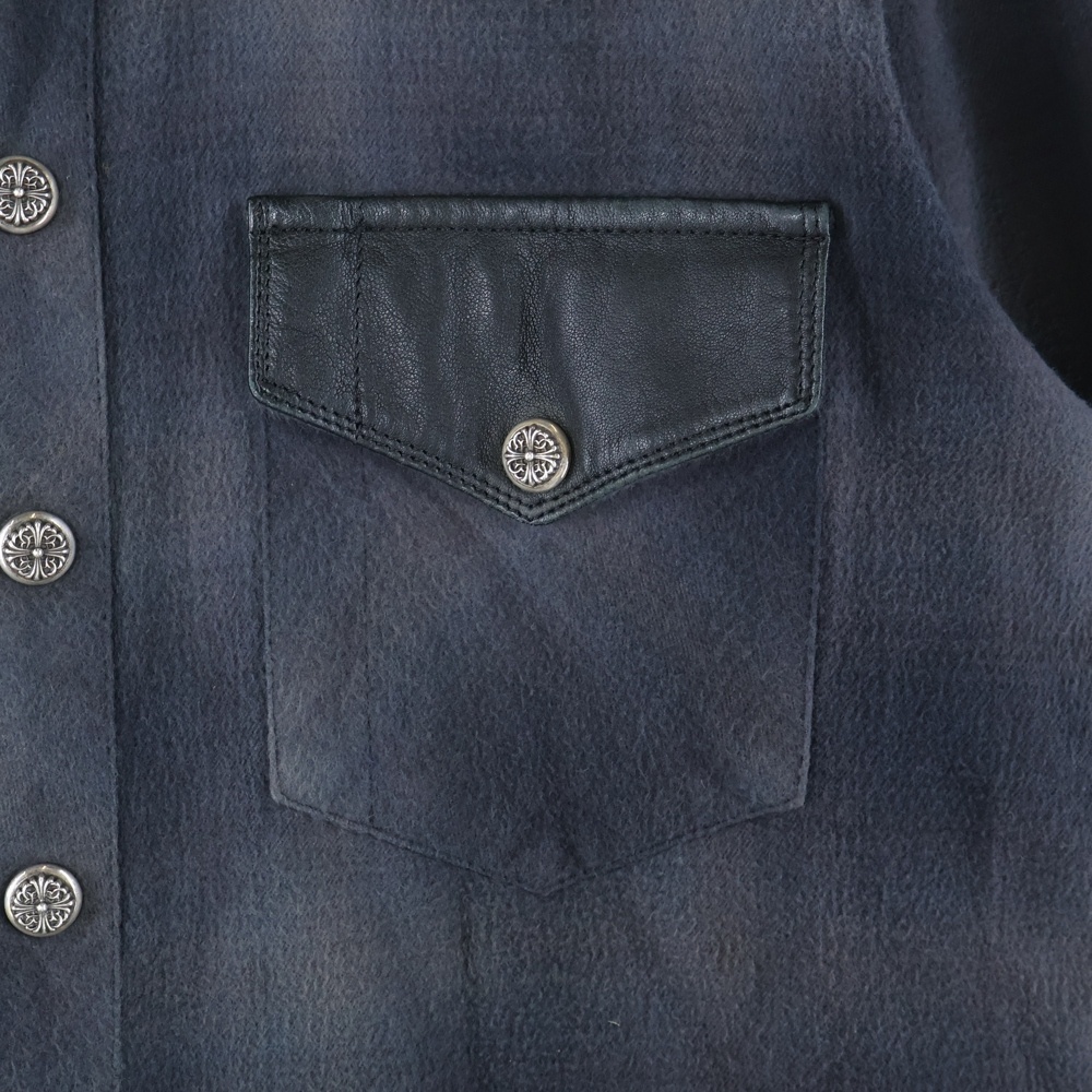 [モデル]WESTN ウエスタンボタン 袖クロスパッチレザー切替クロスボールボタンチェック 長袖シャツ ブラック/ネイビー
