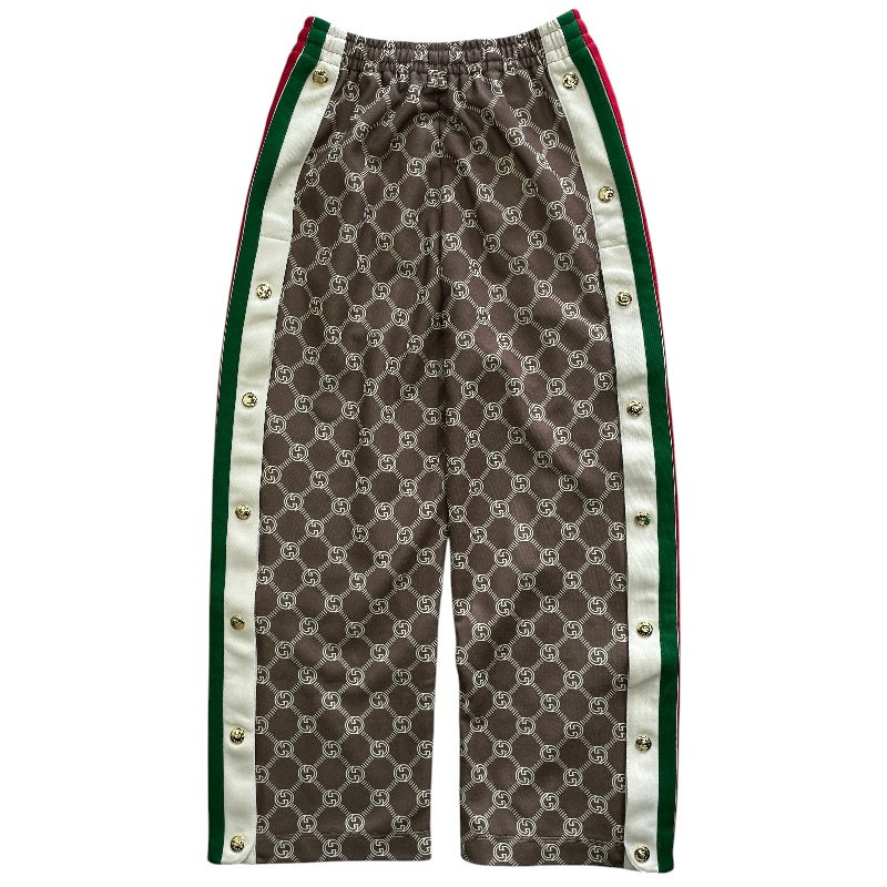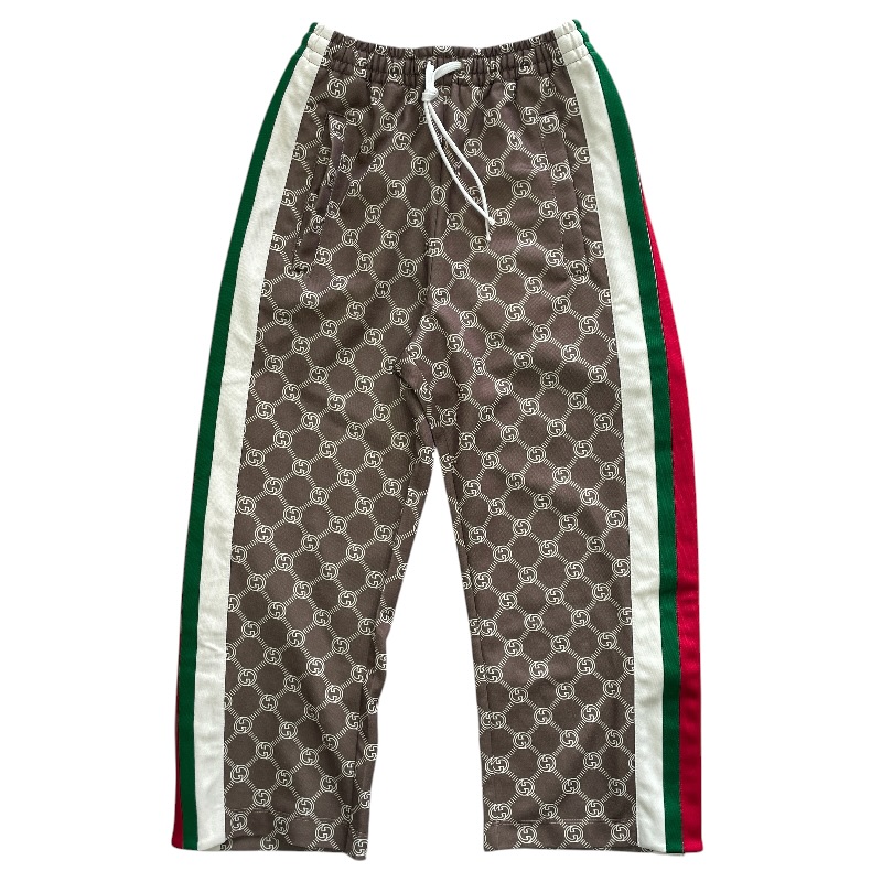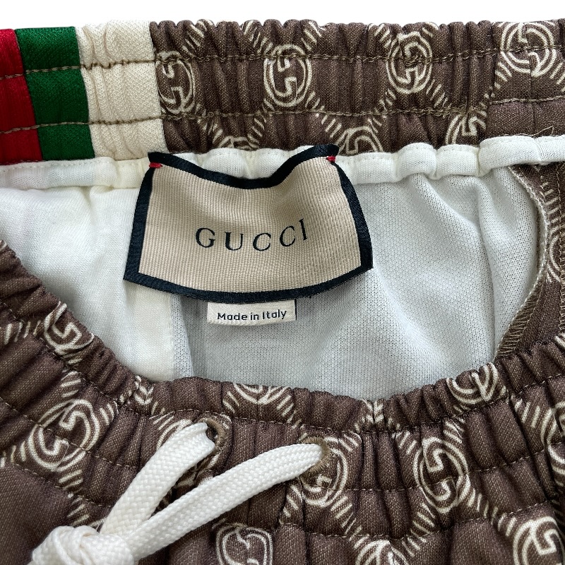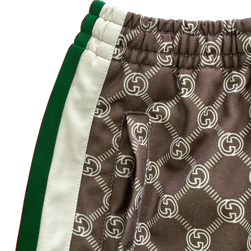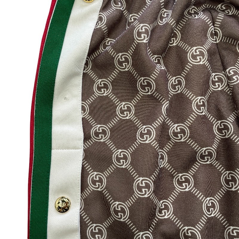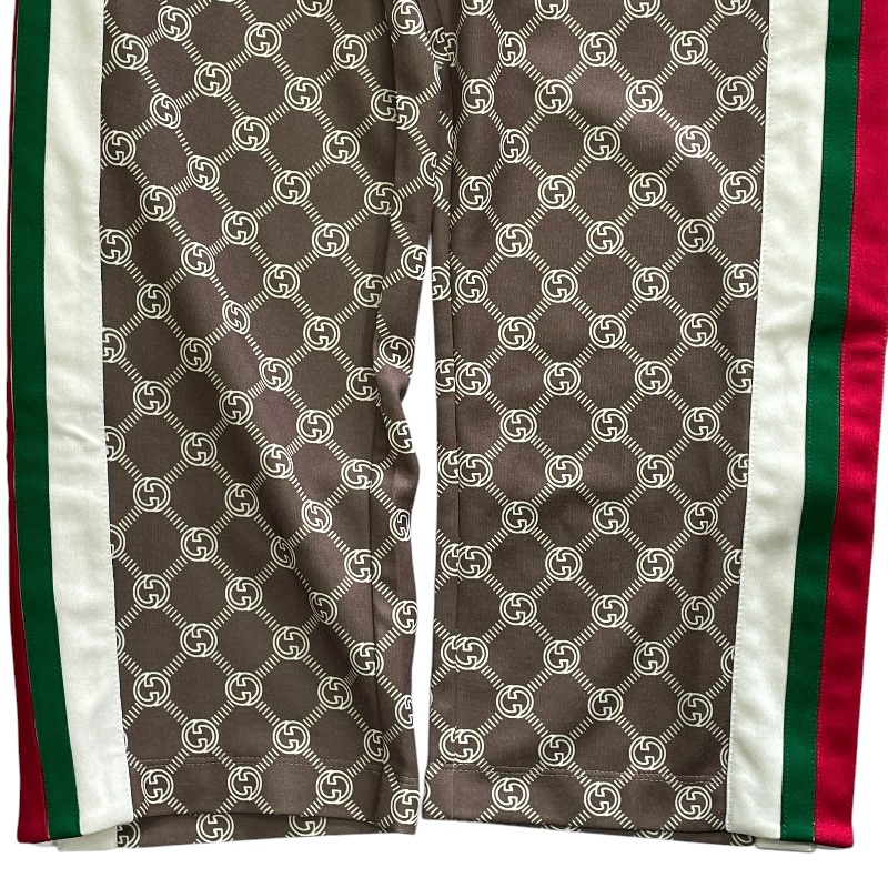【ブランド】GUCCI グッチ【商品名】トラックパンツ【商品番号】671496 XJD1G【カラー】ブラウン/レッド/グリーン【サイズ】(平置き採寸) 総丈:約80cm ウエスト:約28cm(ゴム仕様で伸縮性あり) 股上:約29cm わたり幅:約28cm【素材】ポリエステル55% コットン45%【付属品】タグ/ボタン(裏留め具なし)【ランク】AB(一般中古~良品)【コメント】ボタンが1箇所外れておりますが、付属品としてボタンはお付けいたします。なお、裏側の留め具は欠品しております。【管理番号】0415d1479a商品情報