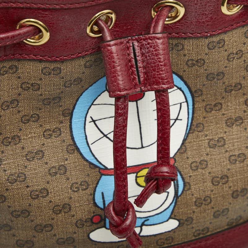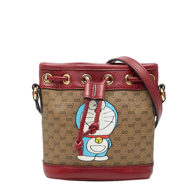 - グッチ × ドラえもん マイクロGGスプリーム 斜め掛け ショルダーバッグ 647801 ベージュ レッド PVC レザー レディース GUCCI 【中古】
