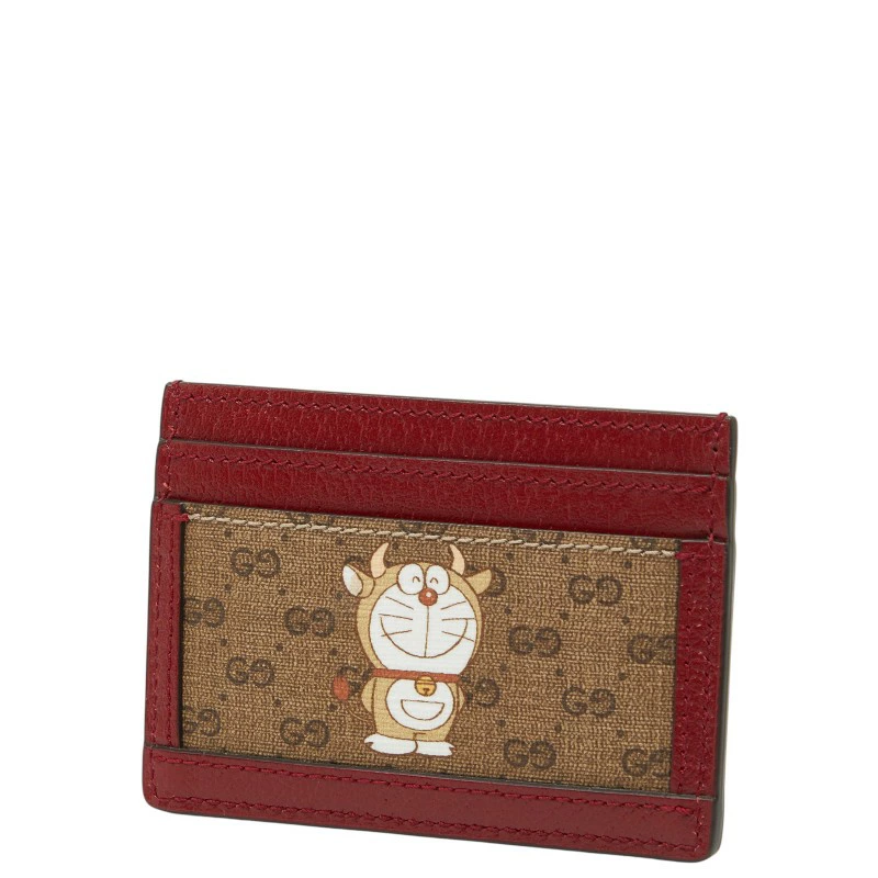 - グッチ × ドラえもん ミニGGスプリーム カードケース パスケース 654539 ベージュ レッド PVC レザー レディース GUCCI 【中古】