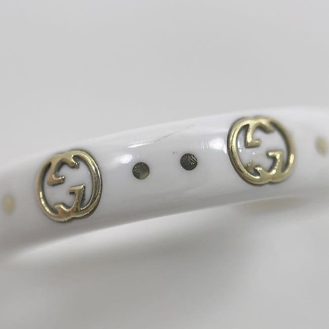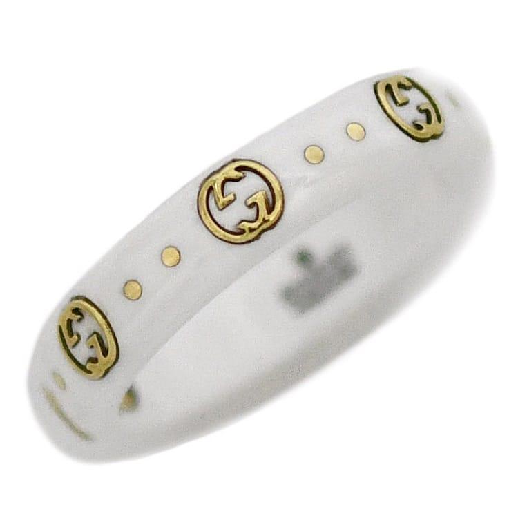 グッチ アイコンリング f-22977 ホワイト イエローゴールド インターロッキング 679262 J85V5 8062 美品 指輪 JP11号 750 セラミック 中古 GUCCI GG 白 ロゴ K18 アイコン リング 箱付き レディース 金 YG レア シンプル アクセサリー ブランド 本物 鑑定済み