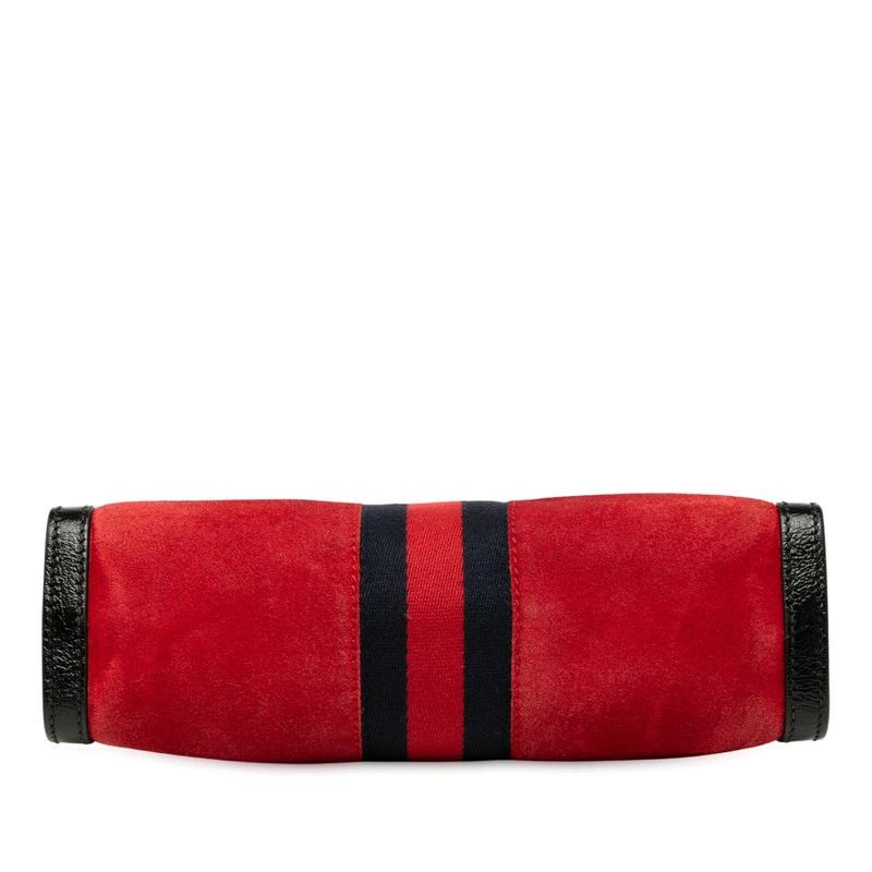 Pre-owned Gucci Ophidia Sherry Line Chain Shoulder Bag 503877 in Red and Black Suede and Leather.