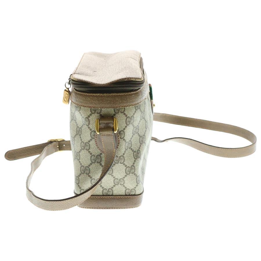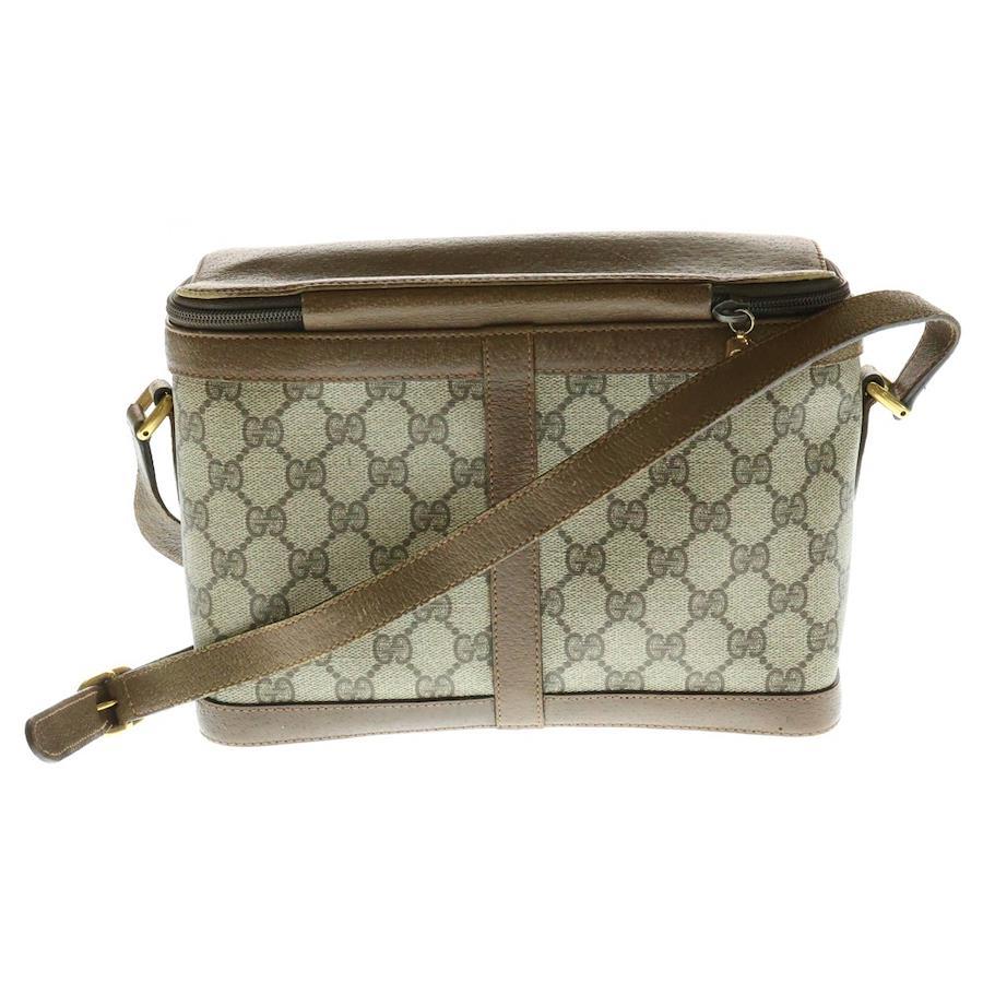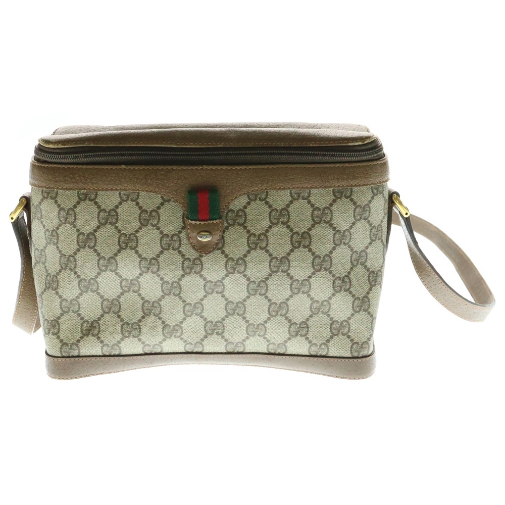 [モデル]オールドグッチ ショルダーバッグ カメラバッグ ブラウン×ベージュ ゴールド金具 PVC×レザー