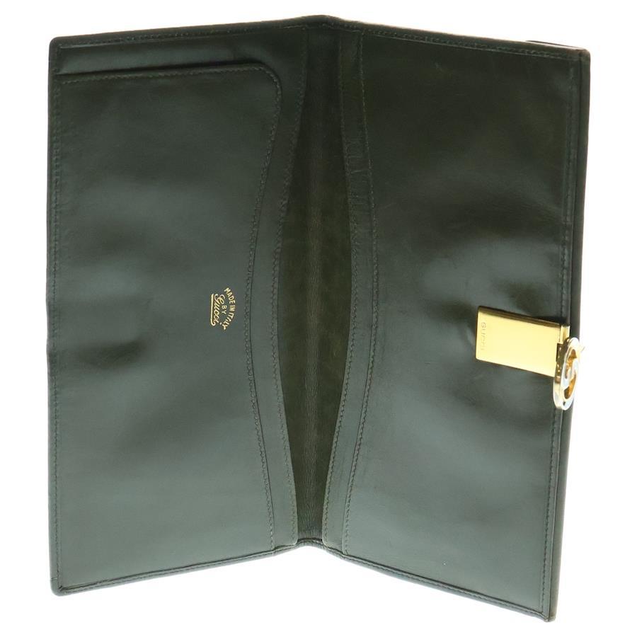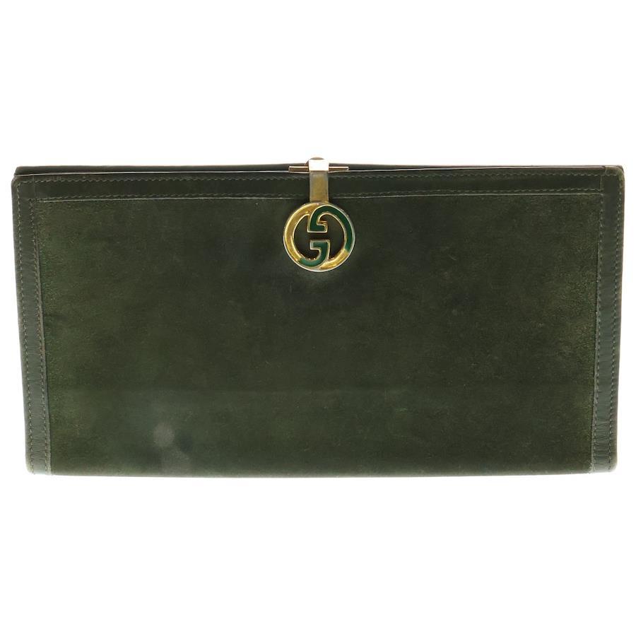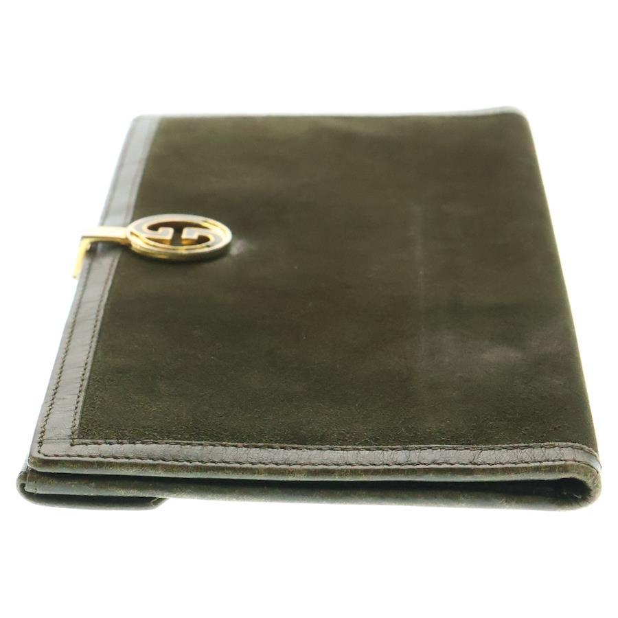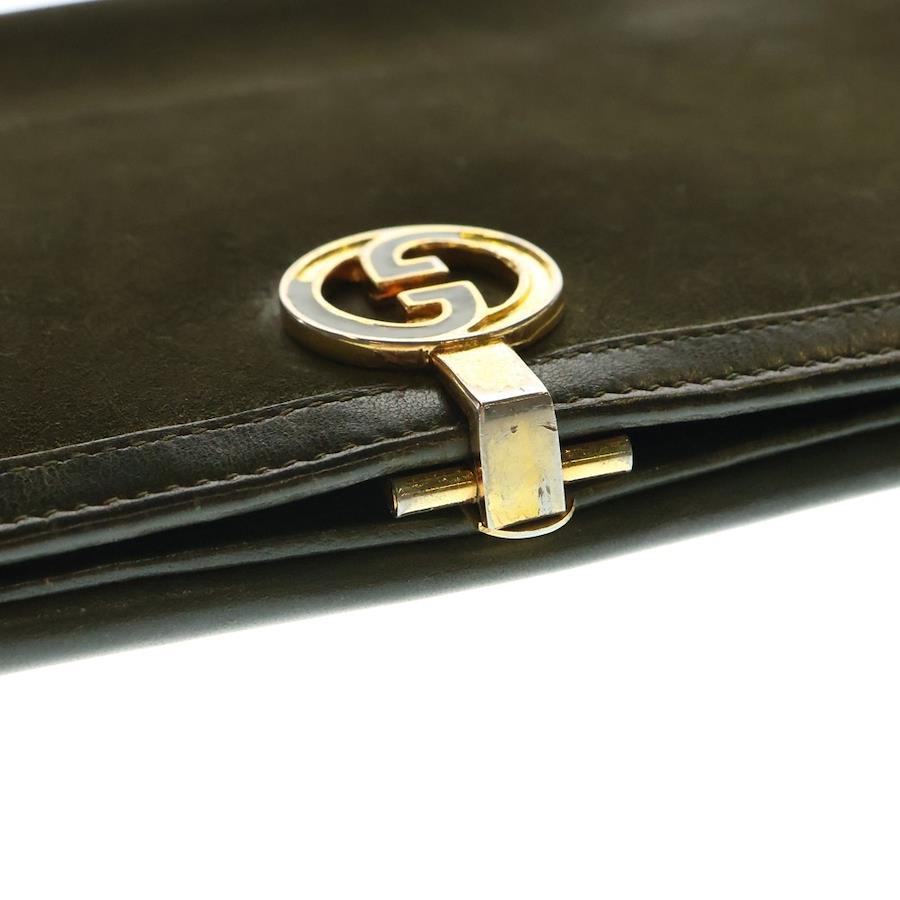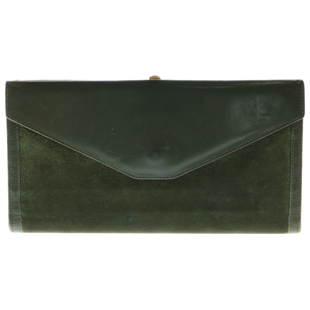 [モデル]オールド GGロゴプレート スウェード コンビレザー ロングウォレット 二つ折り長財布 ゴールド金具 グリーン