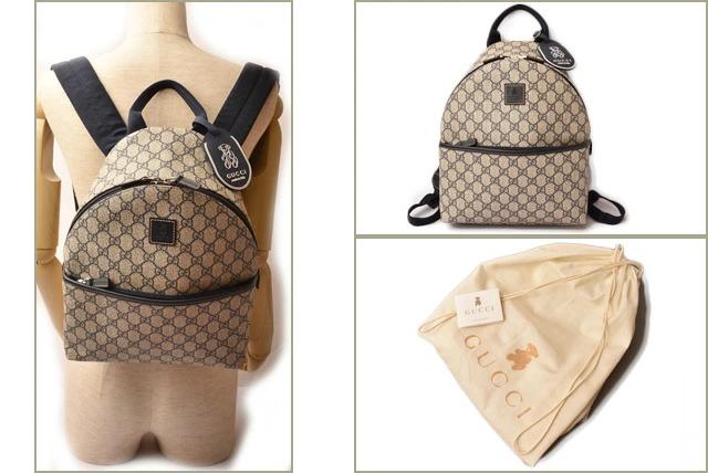 グッチより、キッズサイズのバックパックです。ちょっとしたお出かけや、お子様の習い事バッグにも最適。可愛いテディベアのネームタグが付属しております。水や汚れに強いコーティングキャンバス。雨の日やレジャーなど、気にせず、使い回しがききそうです!開閉部は、ファスナー式となっており、貴重品は、安心して収納できる設計に。