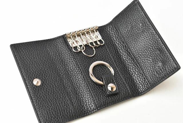 グッチより、キーケースです。シンプルなブラックカラーで、大人の雰囲気に。取り外しのできるキーリングが便利です。ジャケットの内ポケットや、ボトムスのポケットにもすっぽり収まります。年齢層にこだわらず、贈り物にも人気のグッチの小物雑貨です。